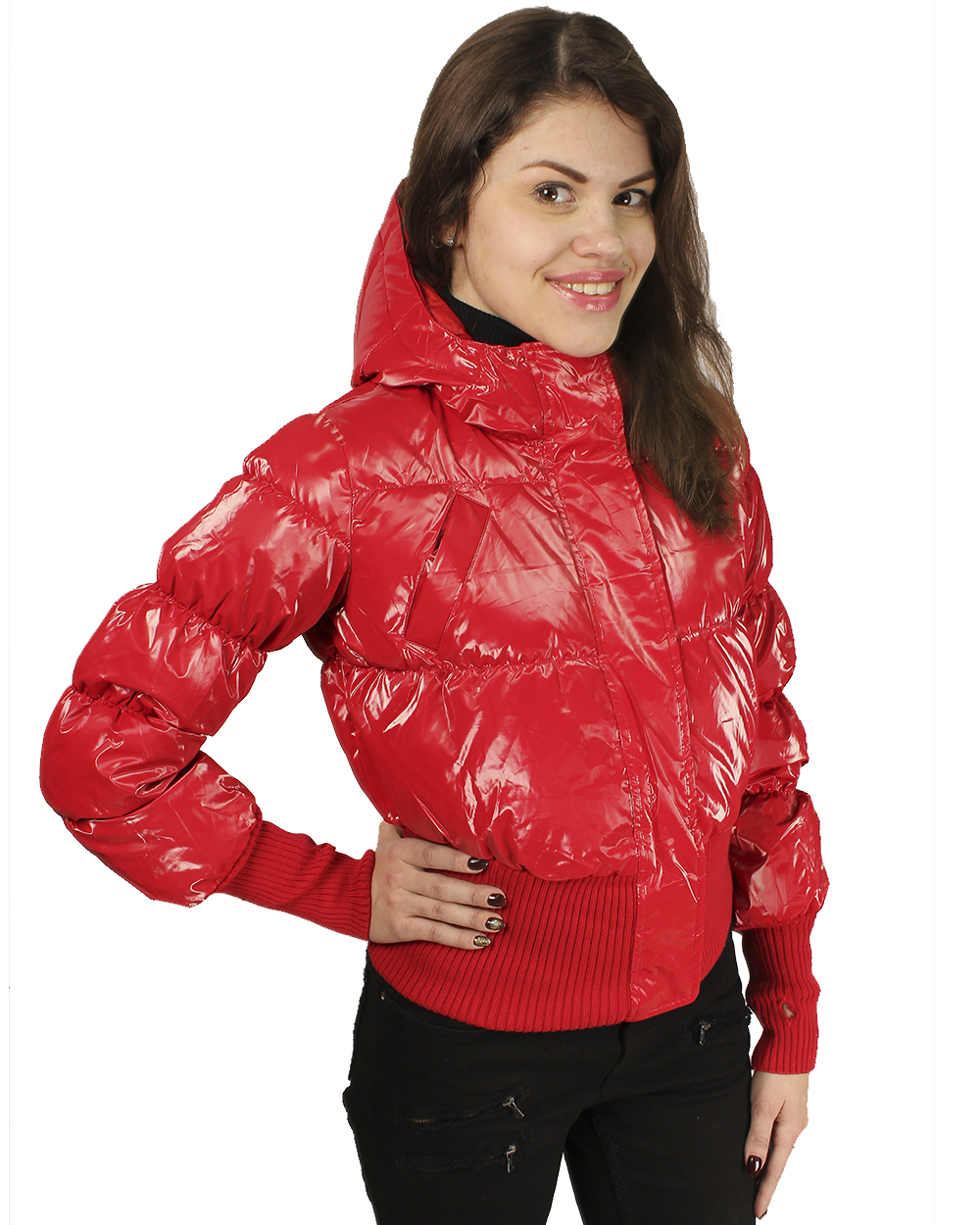 Укороченная подростковая куртка, гляцевого ярко-красного цвета. модель на резинке не позволяет задувать ветру под одежду.