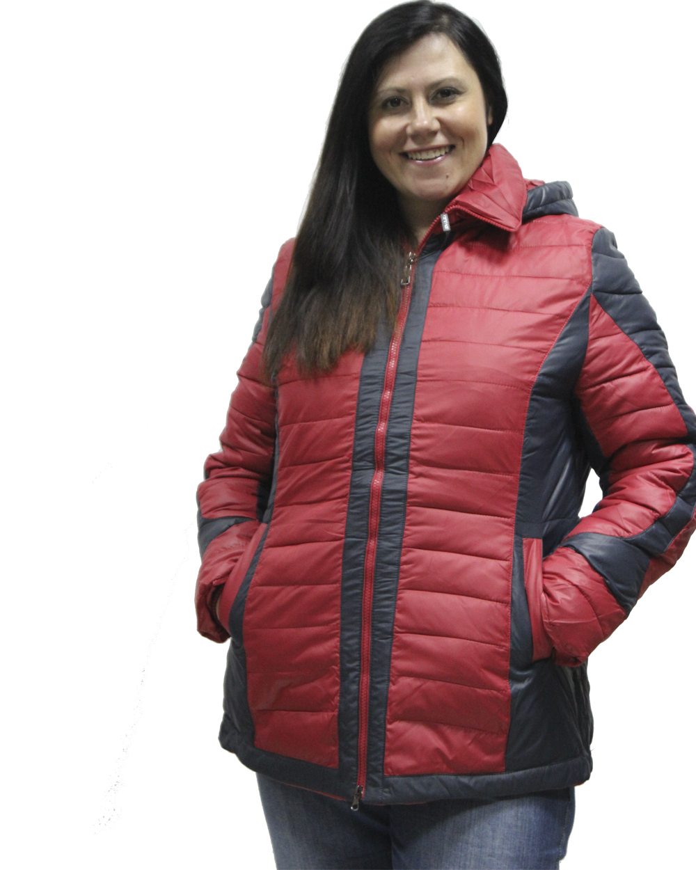 Двухцветная куртка прямого кроя. В модели предусмотрен капюшон и два кармана. Застёгивается куртка на молнию.
