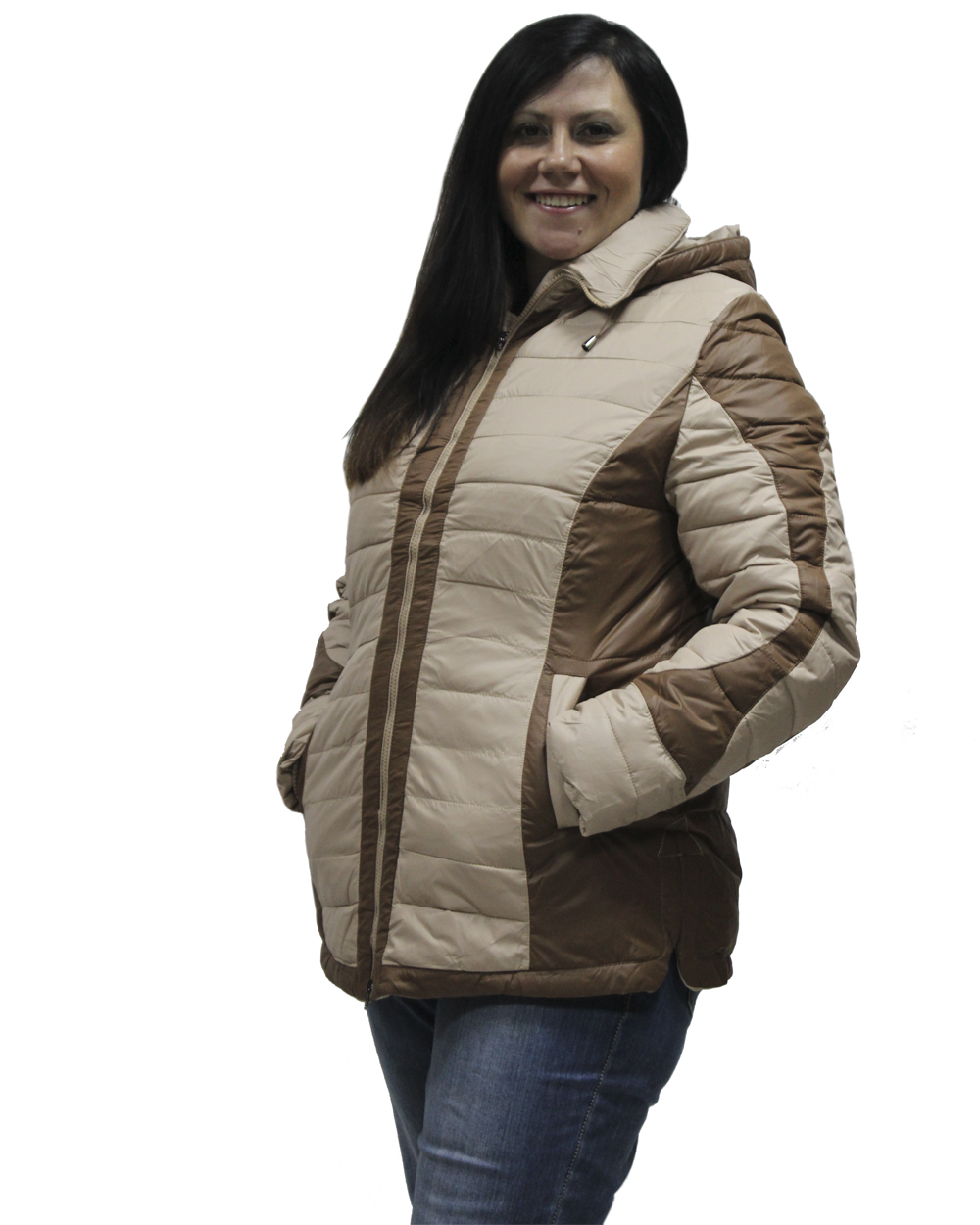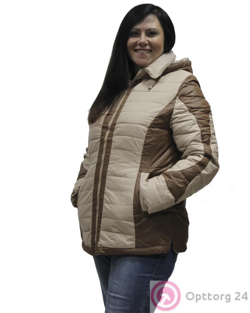 Куртка двухцветная (светлый беж) с капюшоном оптом