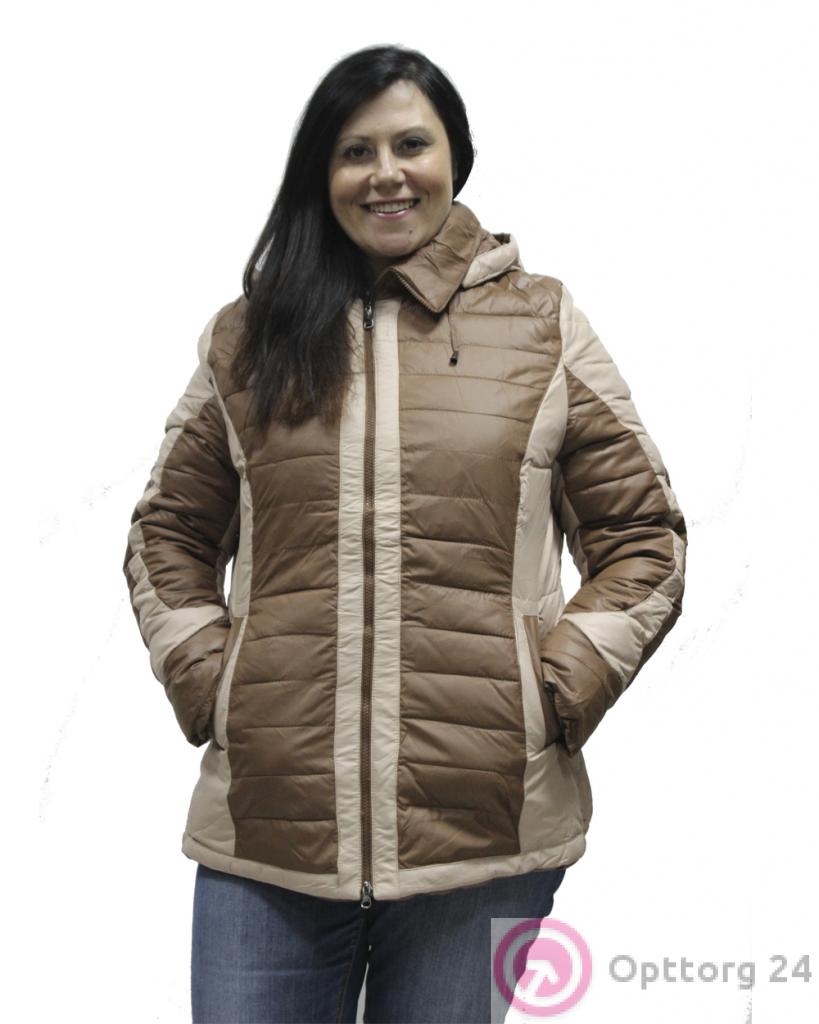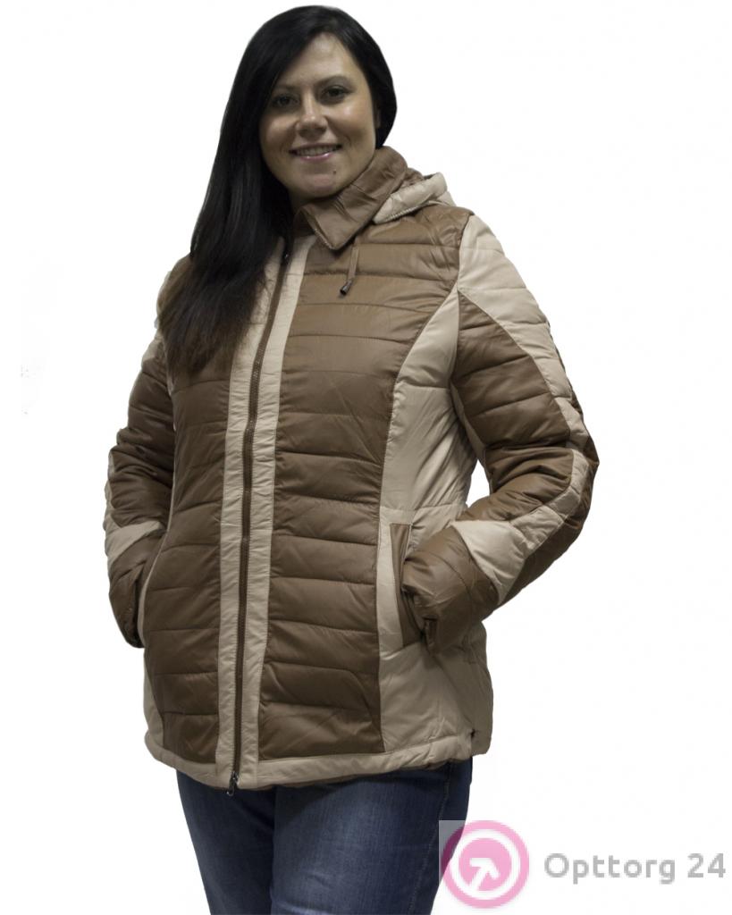 Куртка двухцветная (темный и светлый беж) с капюшоном оптом