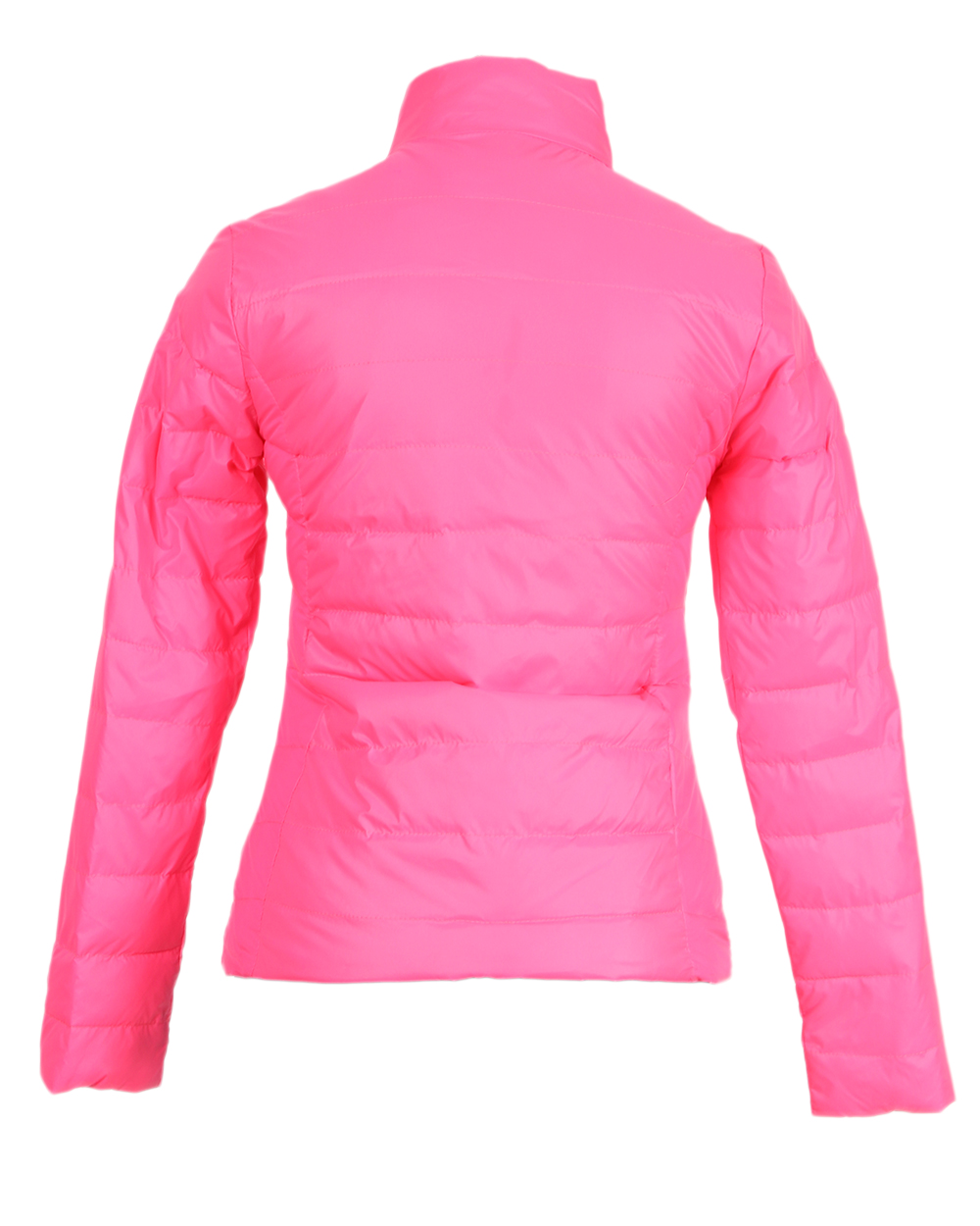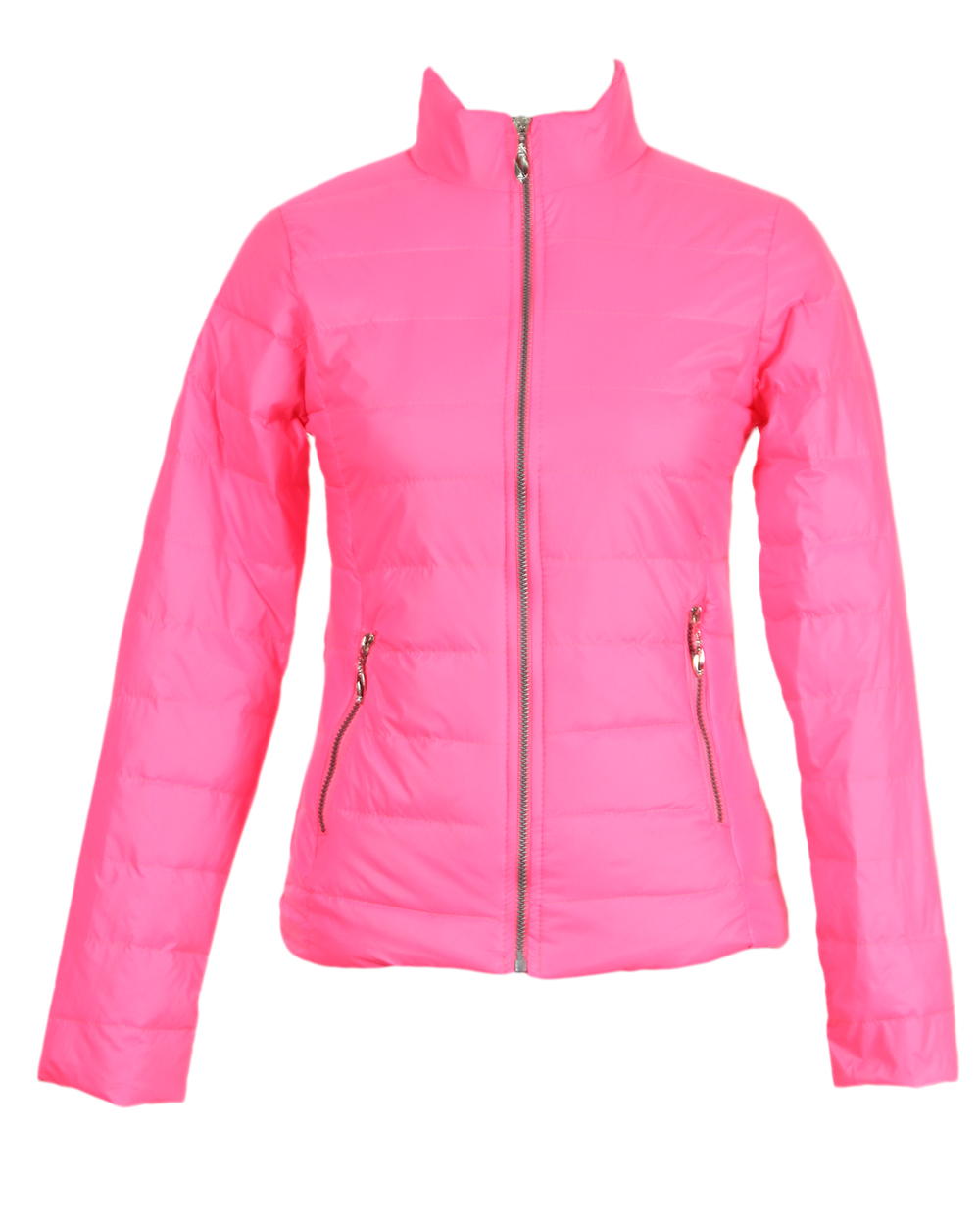 Розовая женская куртка приталенного кроя. Стеганная, застегивается на молнию.