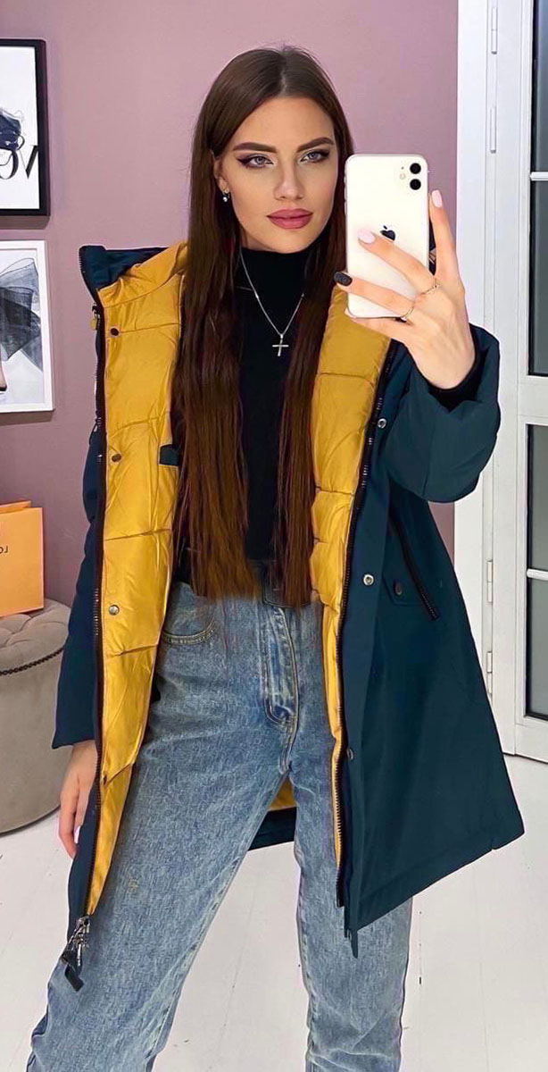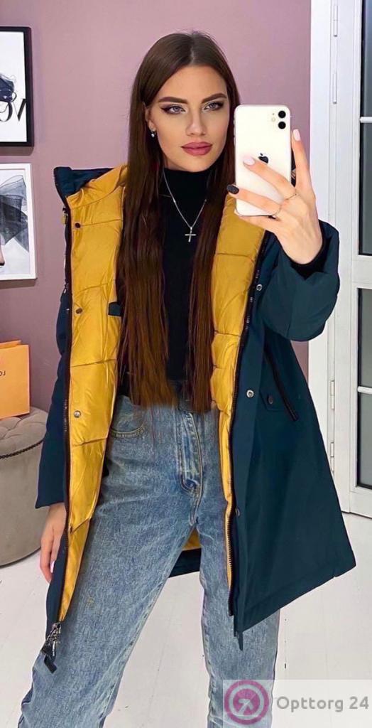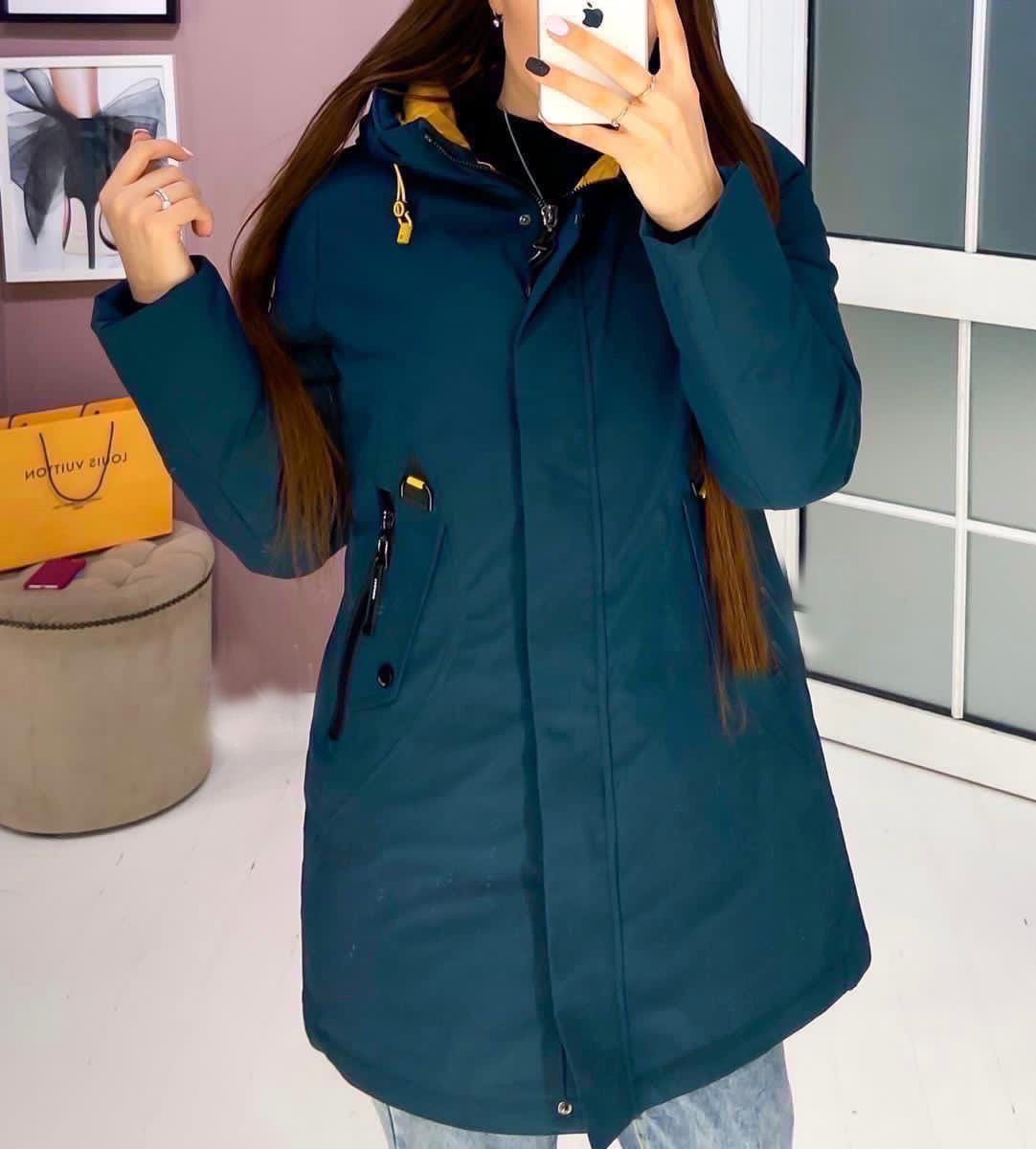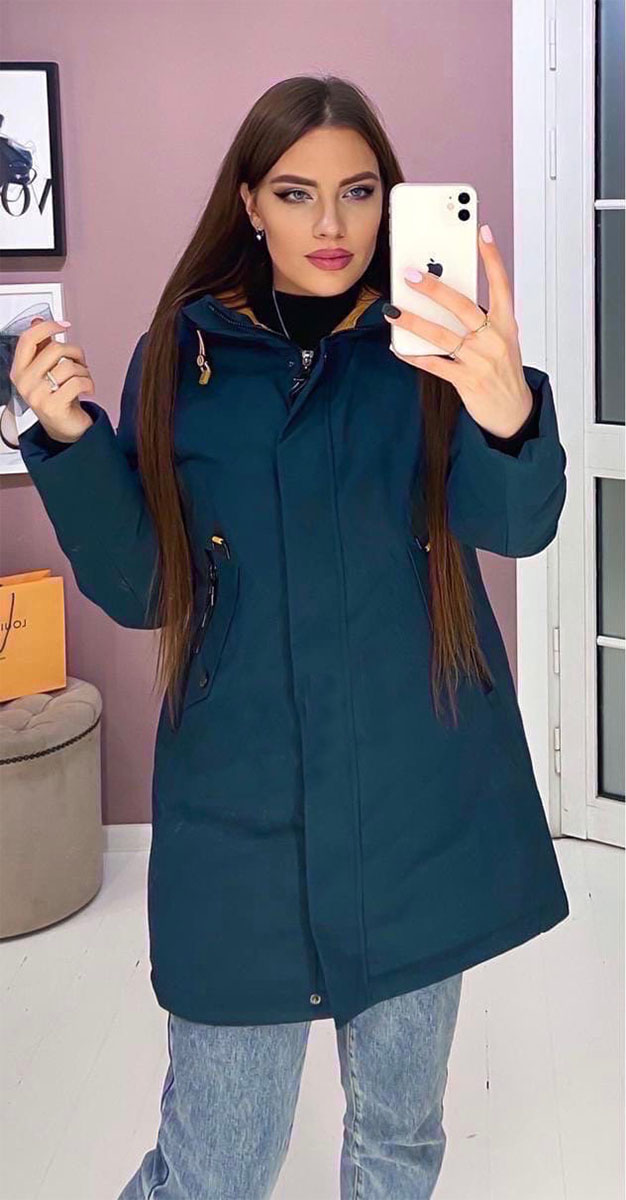 Описание: Куртка-парка зимняя женская цвет сине-зеленый. Высокий воротник. Есть капюшон. Застежка на молнии с ветрозащитной планкой на кнопках, есть два кармана на молнии.