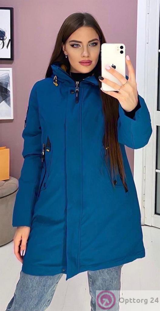 Описание: Куртка-парка зимняя женская цвет васильковый. Высокий воротник. Есть капюшон. Застежка на молнии с ветрозащитной планкой на кнопках, есть два кармана на молнии.