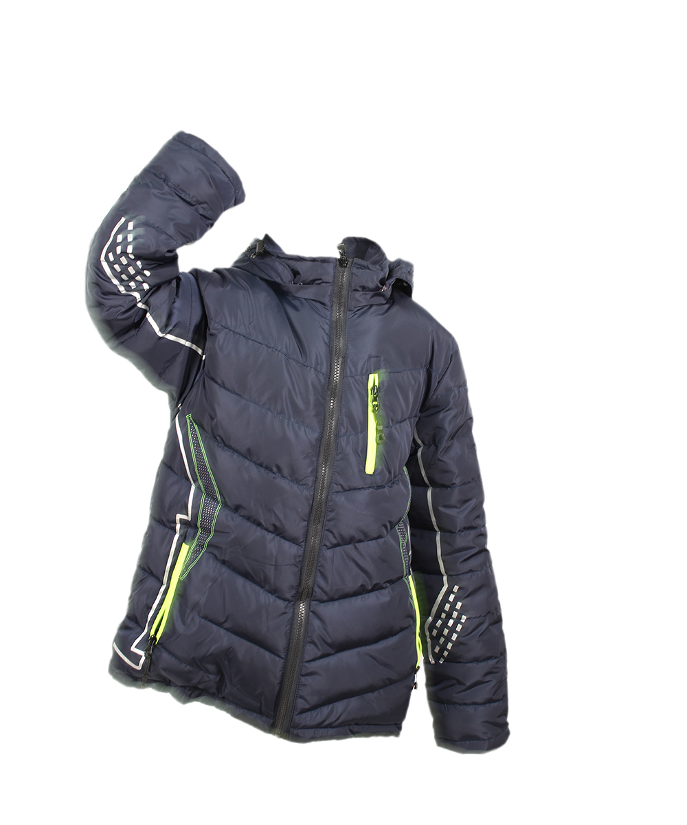 Теплая куртка с воротником-стойкой и капюшоном. Застегивается изделие на молнию.