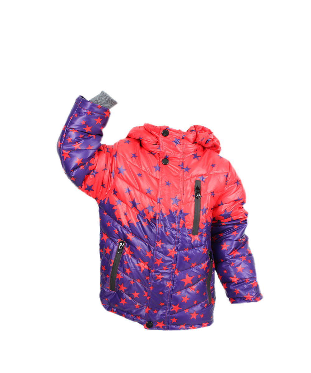 Модная яркая куртка с изображением звезд. Посередине застежка на молнию, 3 кармана на молниях.