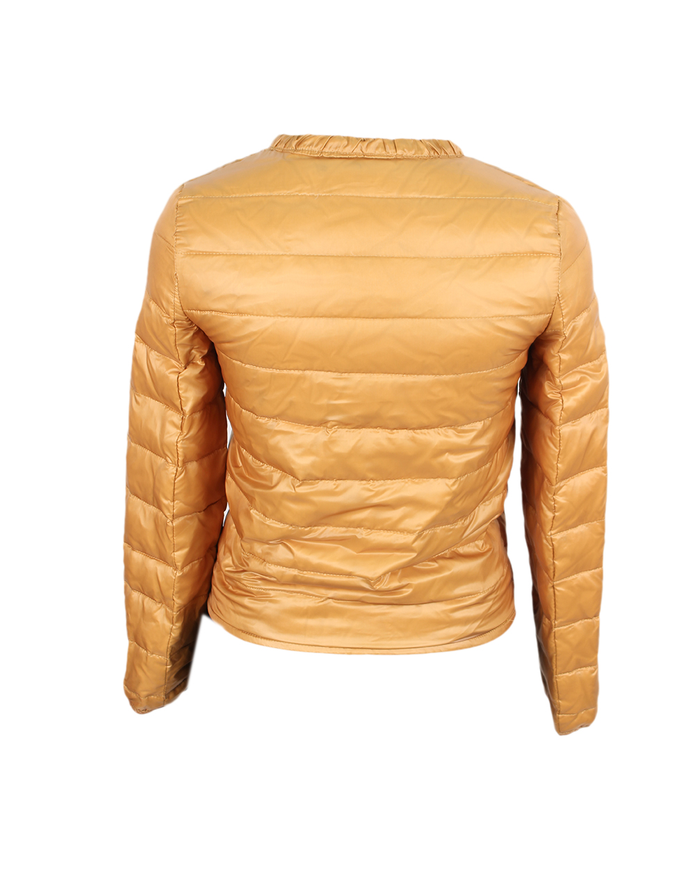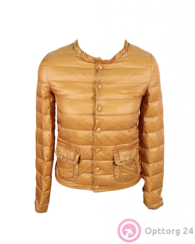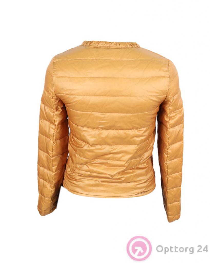 Молодежная женская куртка с округлой горловиной. Модель застегивается на пуговицы. Есть два накладных кармана.