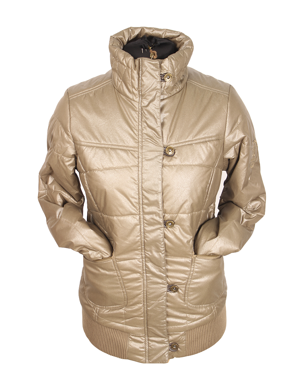 Красивая прогулочная куртка с высоким воротником и эластичными манжетами для лучшей защиты от ветра. В модели предусмотрены накладные карманы.