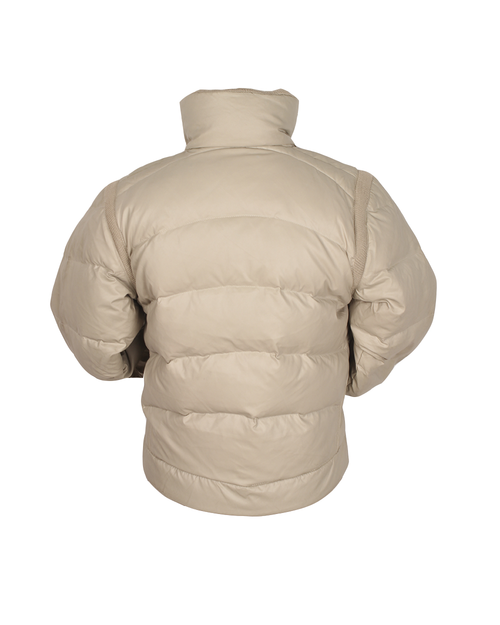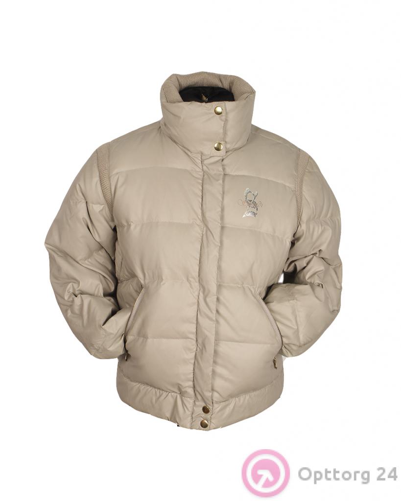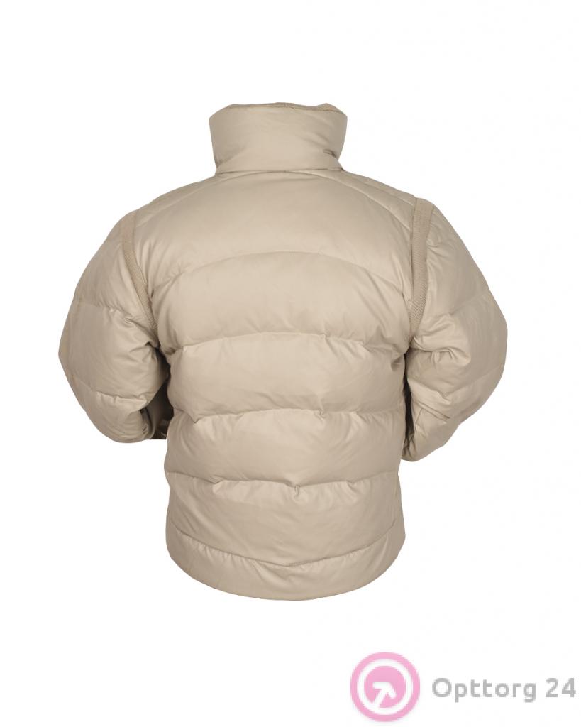 Модная куртка мягкого бежевого цвета. Мягкий водоотталкивающий материал позволяет сохранять тепло и при этом не парит в теплую погоду.