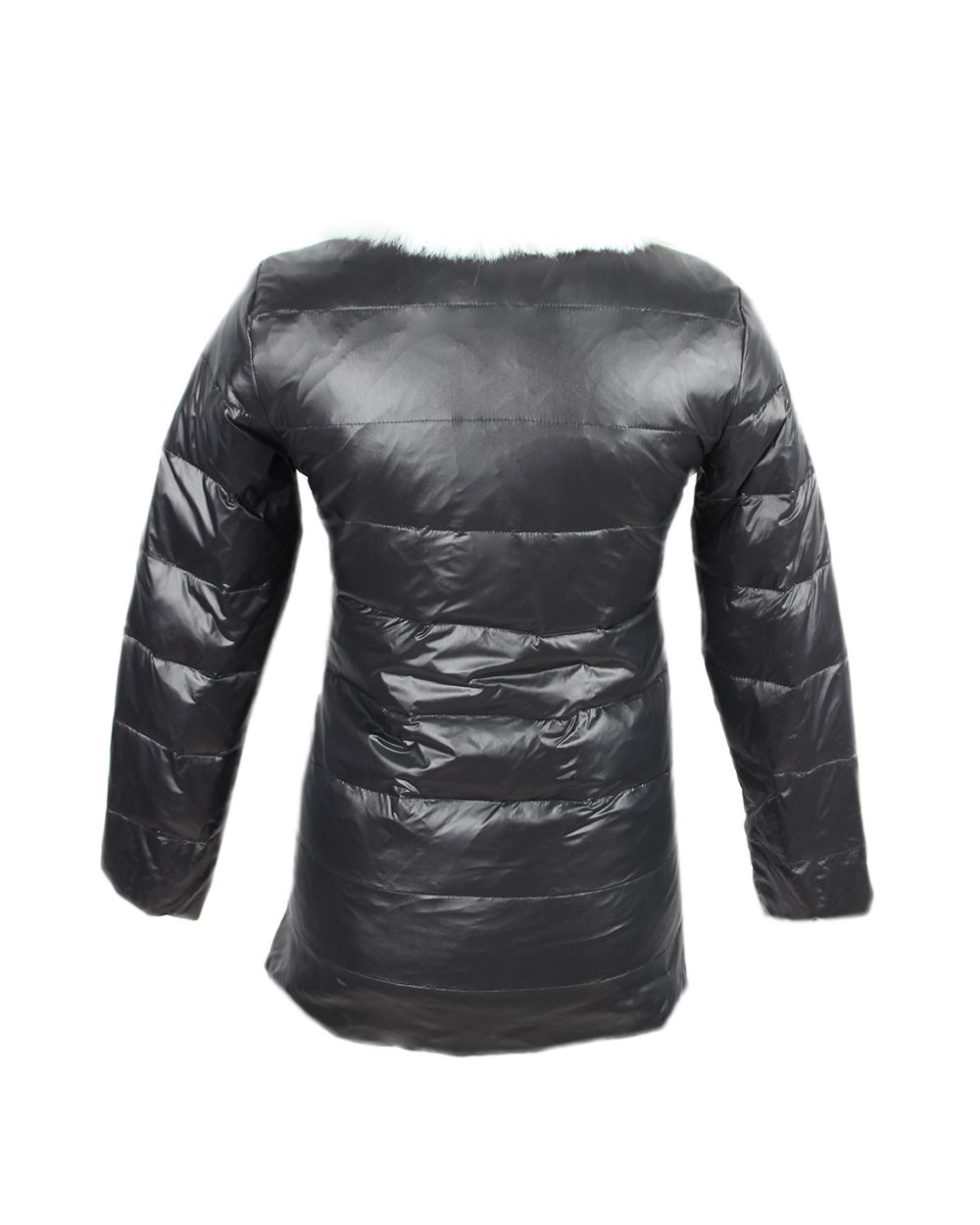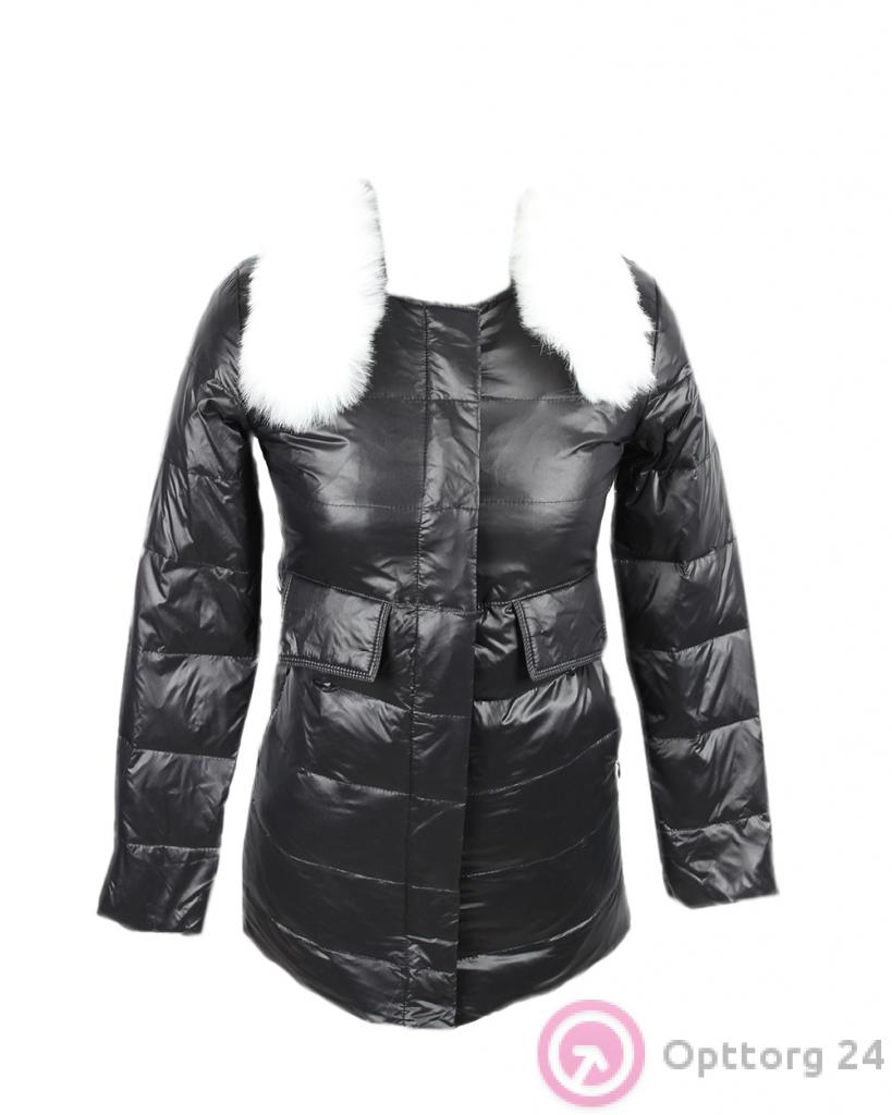 Теплая женская куртка приталенного кроя. Модель имеет белую меховую опушку на воротнике.