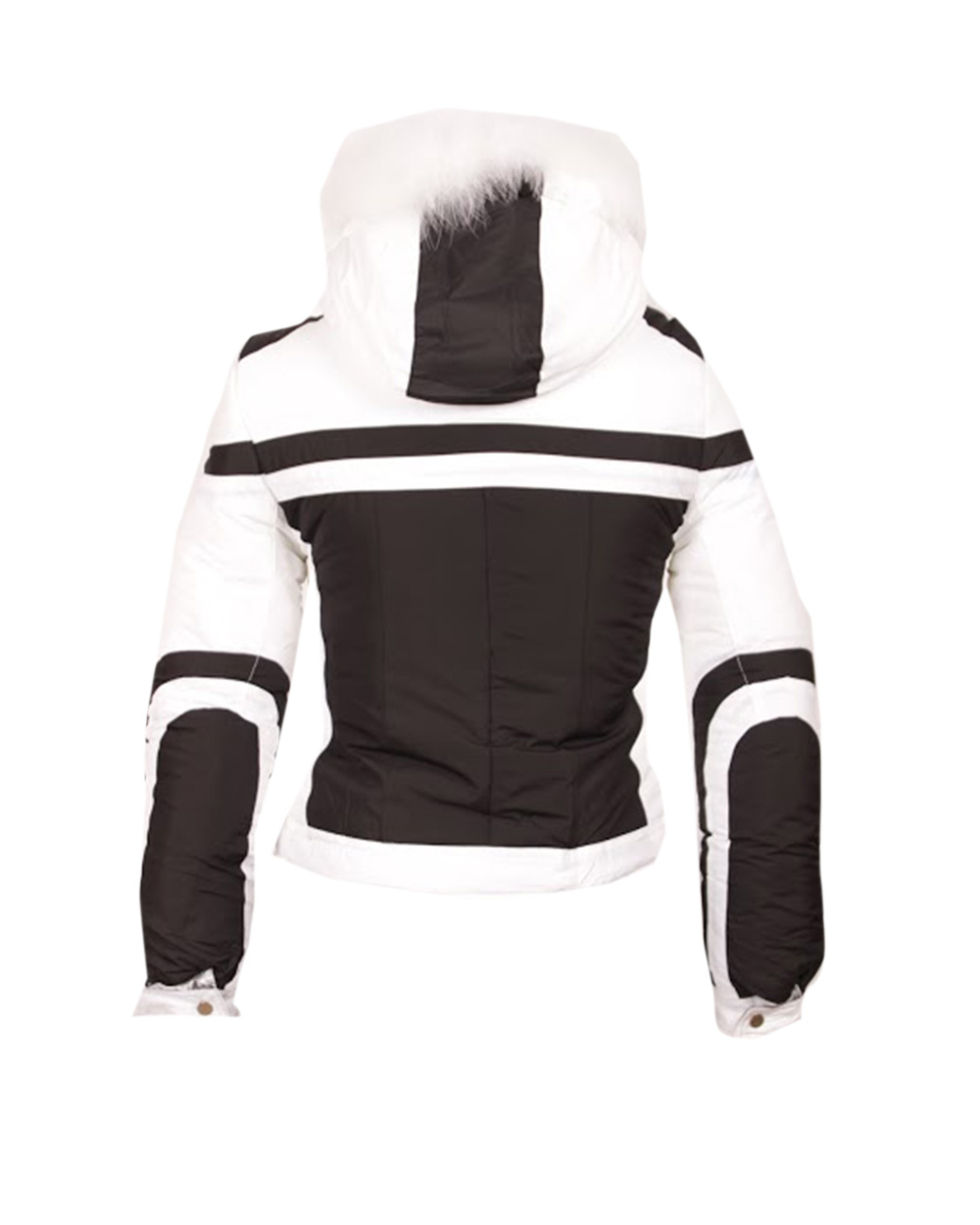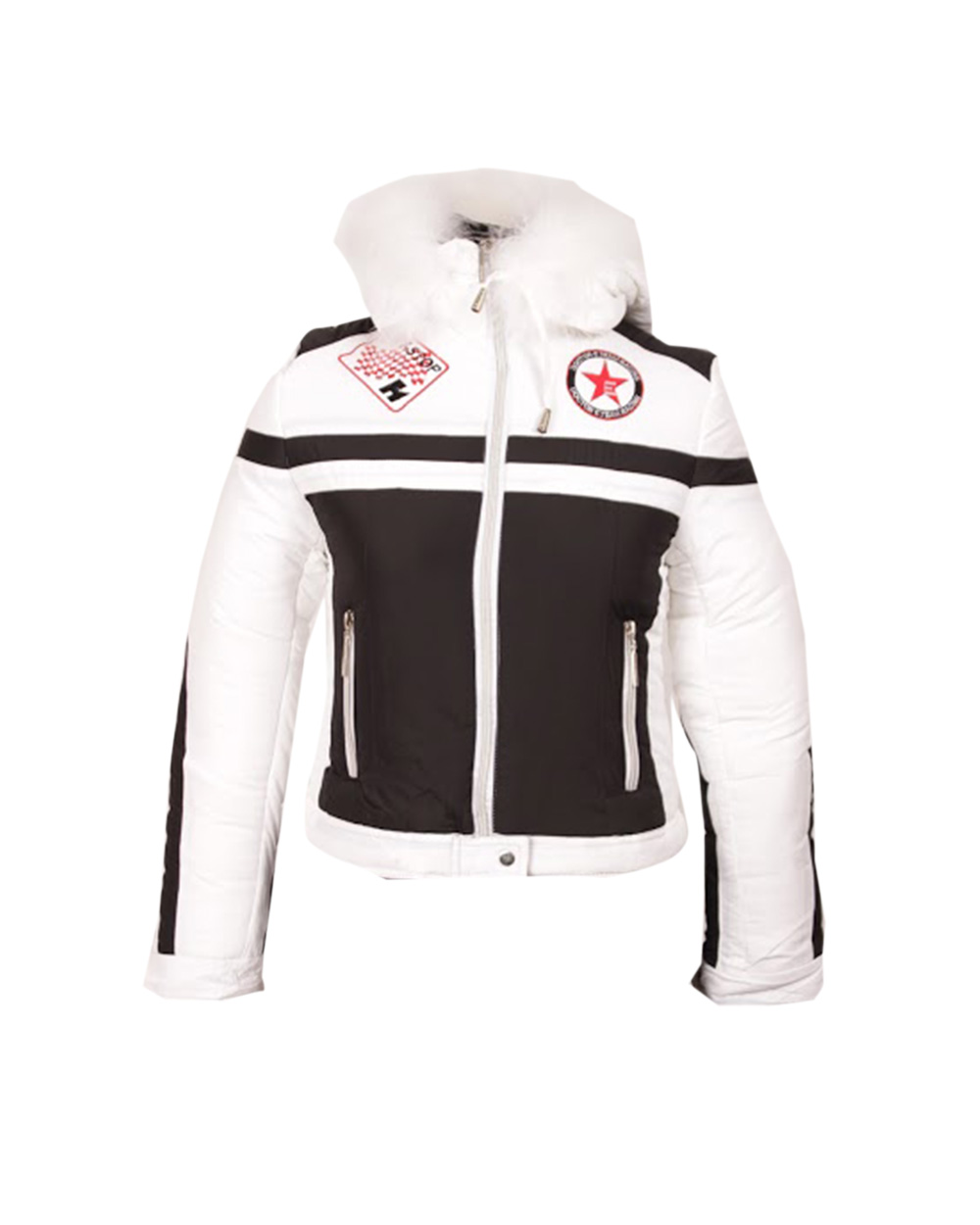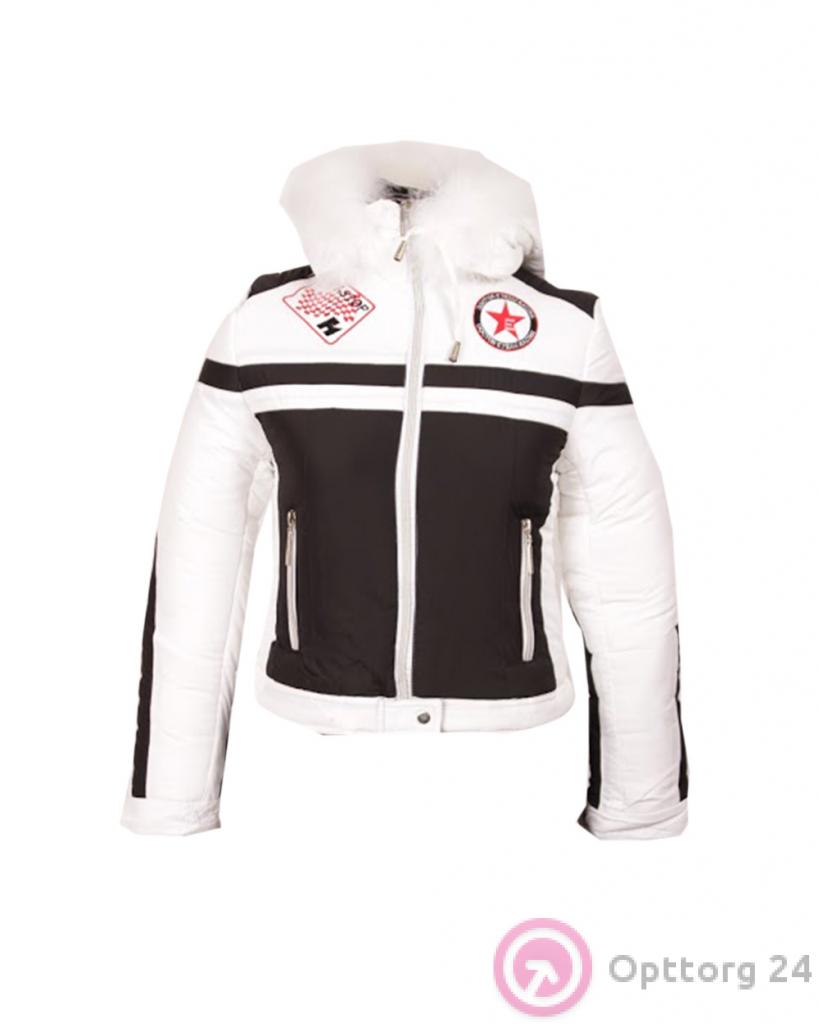 Симпатичная молодежная куртка с застежкой на молнию. Капюшон отделан мехом бклого цвета.
