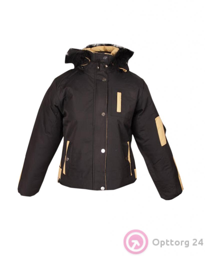 Куртка подростковая черного цвета с бежевыми вставками оптом