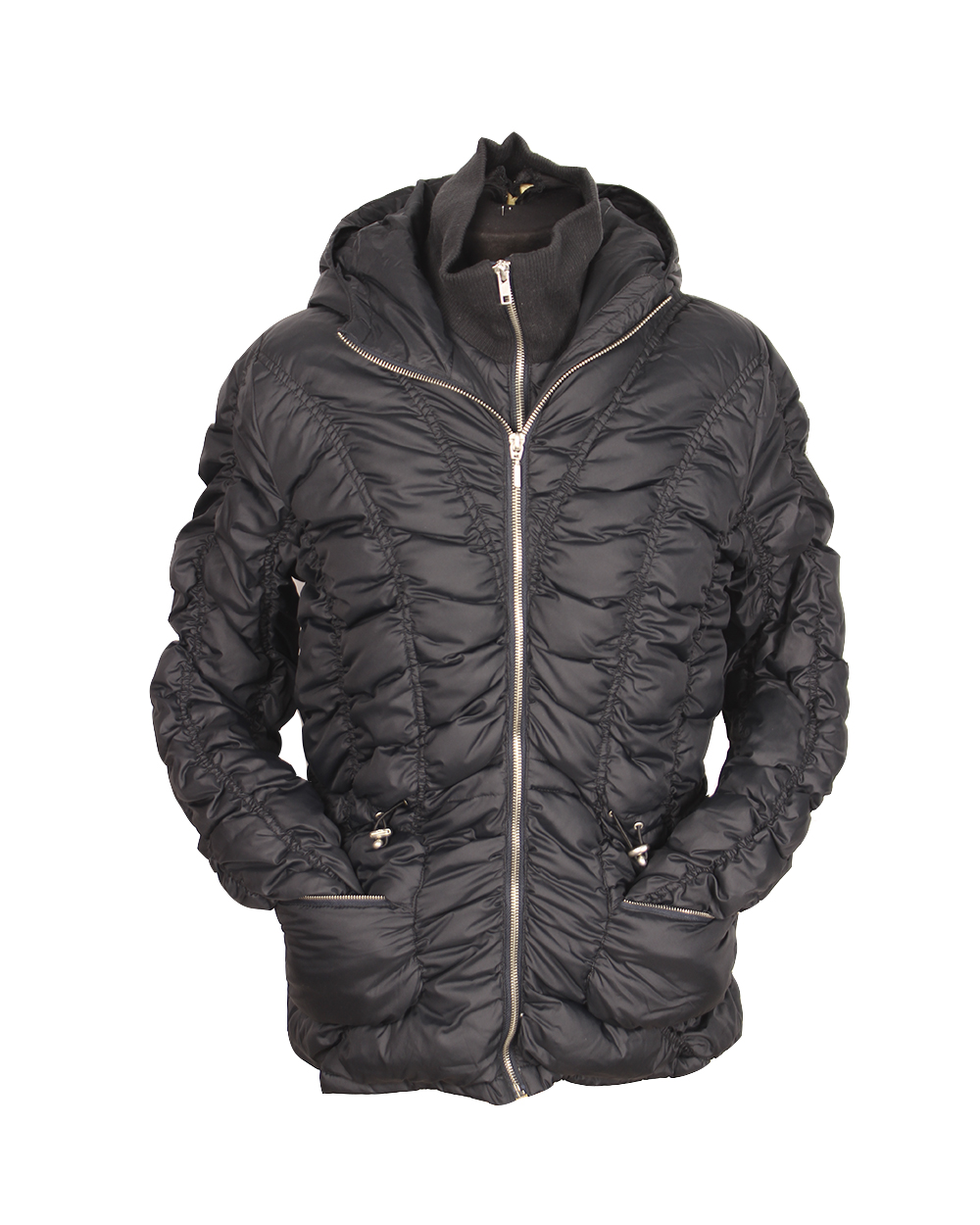 Куртка женская черного цвета с утяжкой оптом