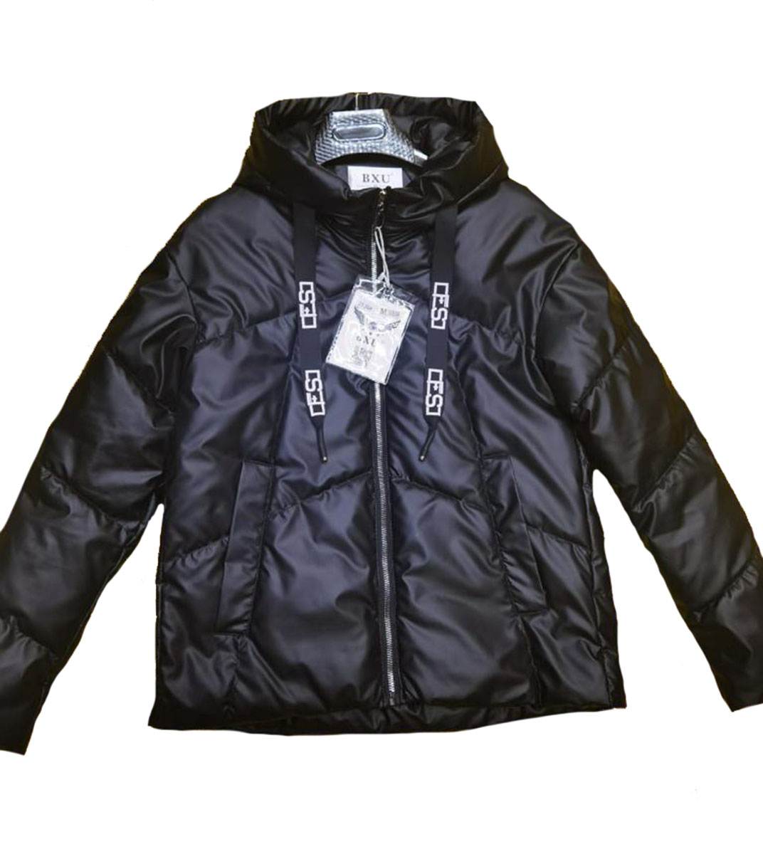 Описание: Куртка женская демисезонная, цвет черный. Застежка на молнии. Высокий воротник. Капюшон декорирован шнурком и есть два кармана.