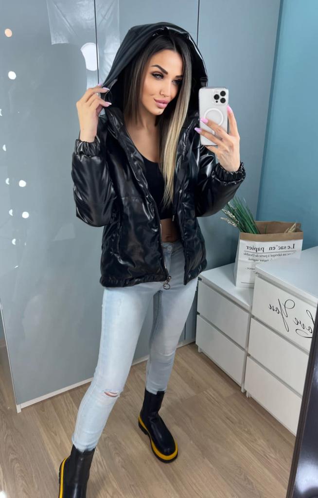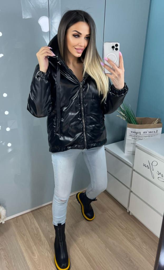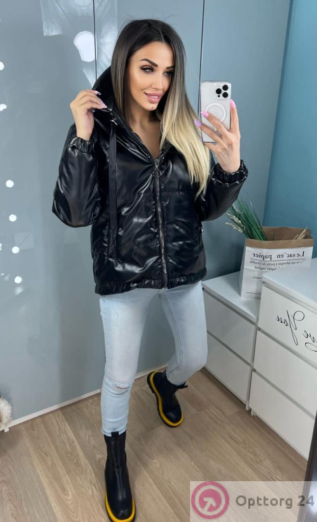 Описание: Куртка женская демисезонная из эко/кожи цвет черный. Застегивается на молнии, капюшон декорирован шнурком и есть два кармана. Манжеты рукавов на резинке.
