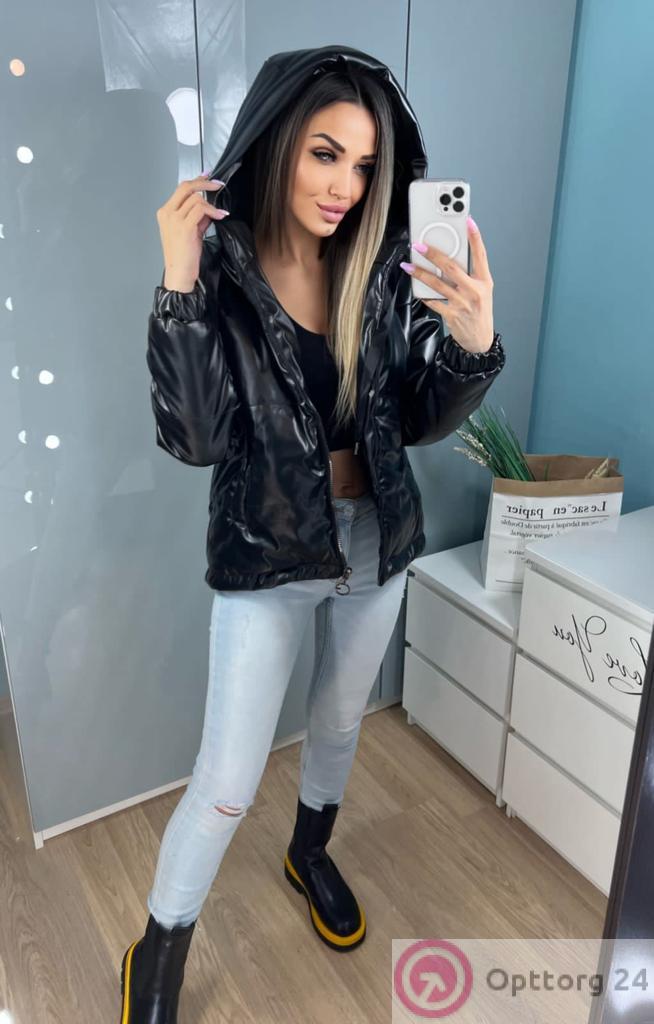 Куртка женская демисезонная из эко/кожи цвет черный оптом