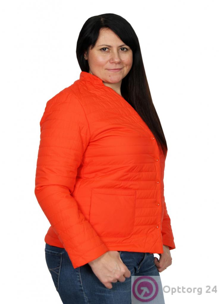 Женская демисезонная куртка укороченного кроя. Яркое и насыщенное цветом изделие. Застегивается на симпотичные пуговицы, имеет два кармана и необычный ворот