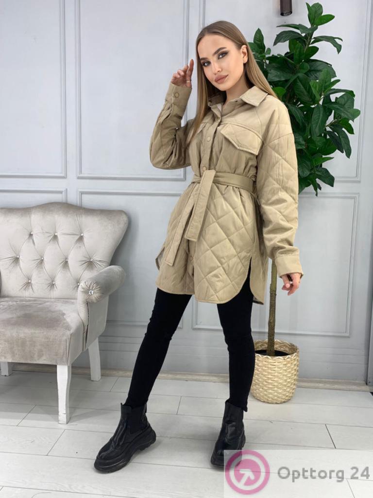 Описание: Куртка женская демисезонная с поясом цвет песочный.