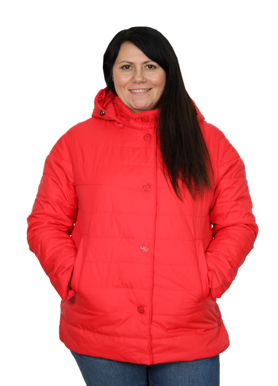 Качественная куртка насыщенного красного цвета. Удобный капюшон можно в любой момент отстегнуть: он крепится на пуговицах, а так же имеет регулировку. Застегивается куртка на молнию и пуговицы и имеет два удобных кармана