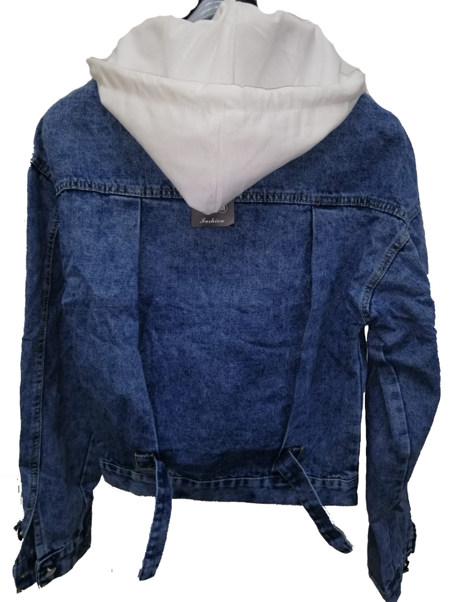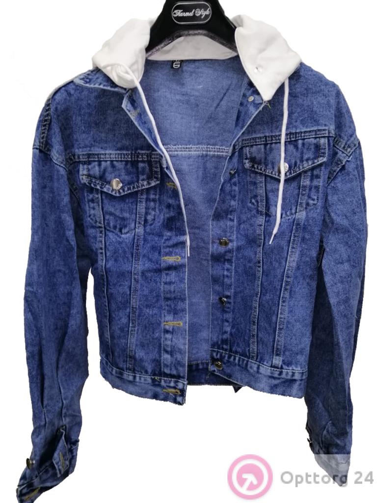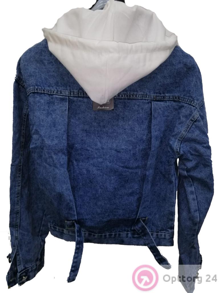 Куртка женская джинсовая с белым капюшоном оптом