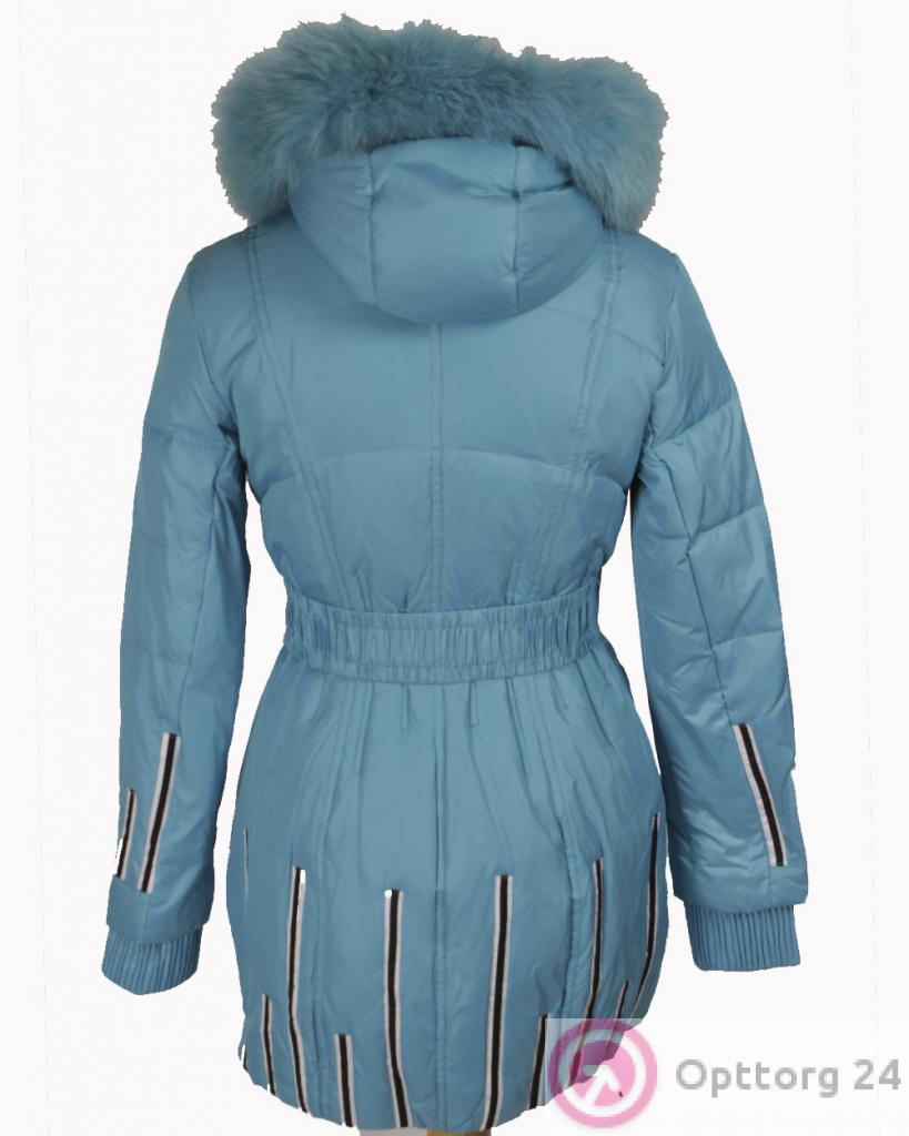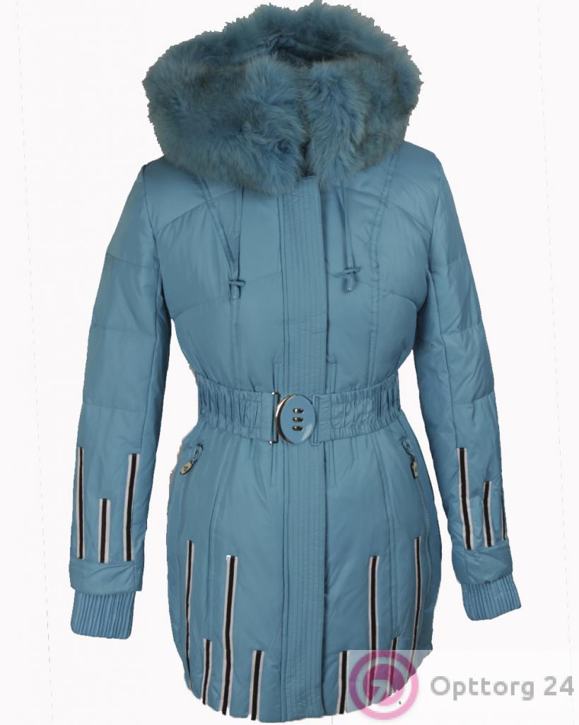 Пуховик женский голубого цвета с белыми полосками. оптом
