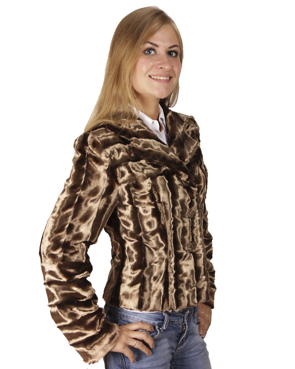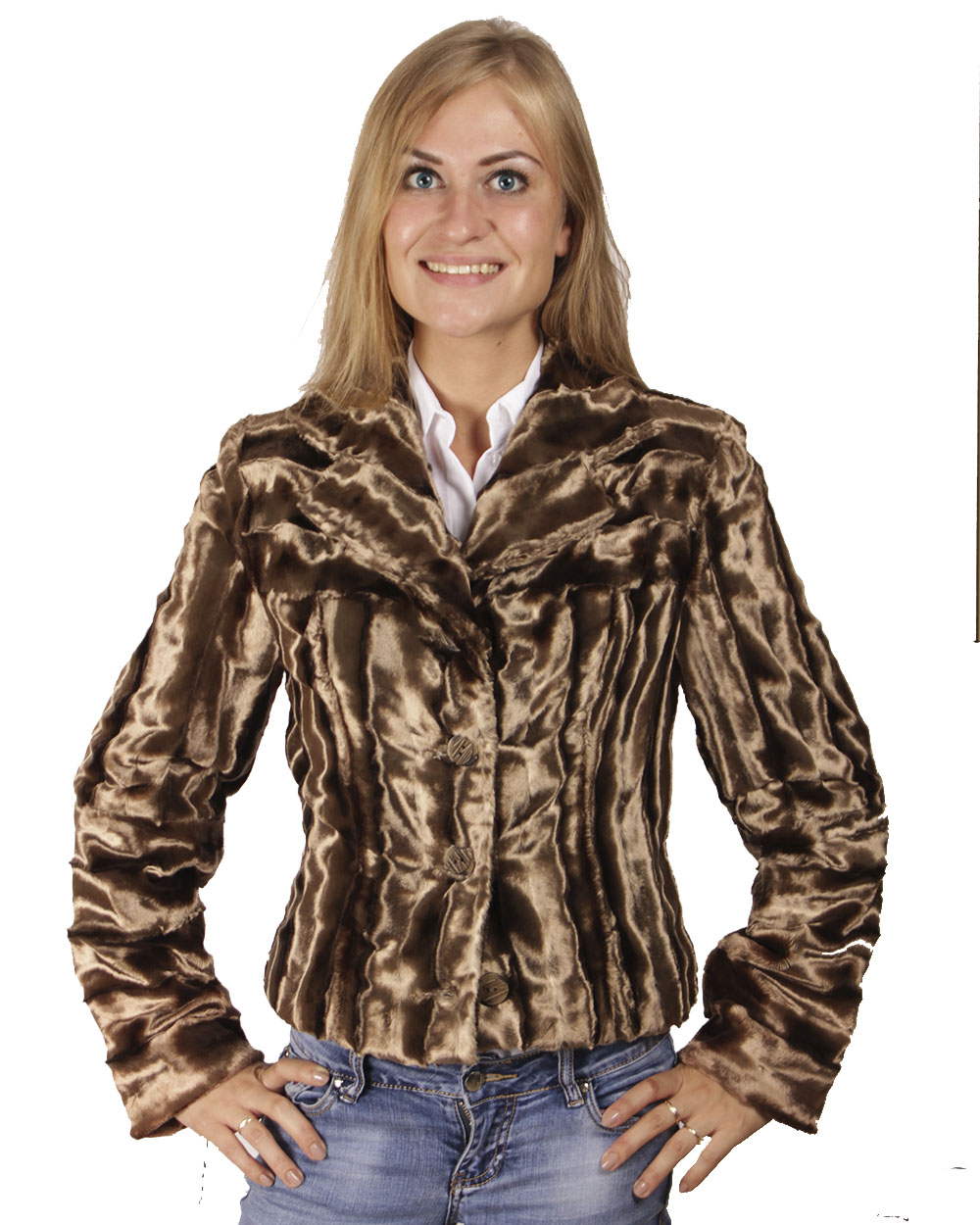 Короткая, женская куртка коричневого цвета, выполнена из приятного на ощуп и гладкого, искусственного меха. Куртка прекрасно сочитается с любым типом гардероба. Стильно и привлекательно блестит при свете солнечных лучей.