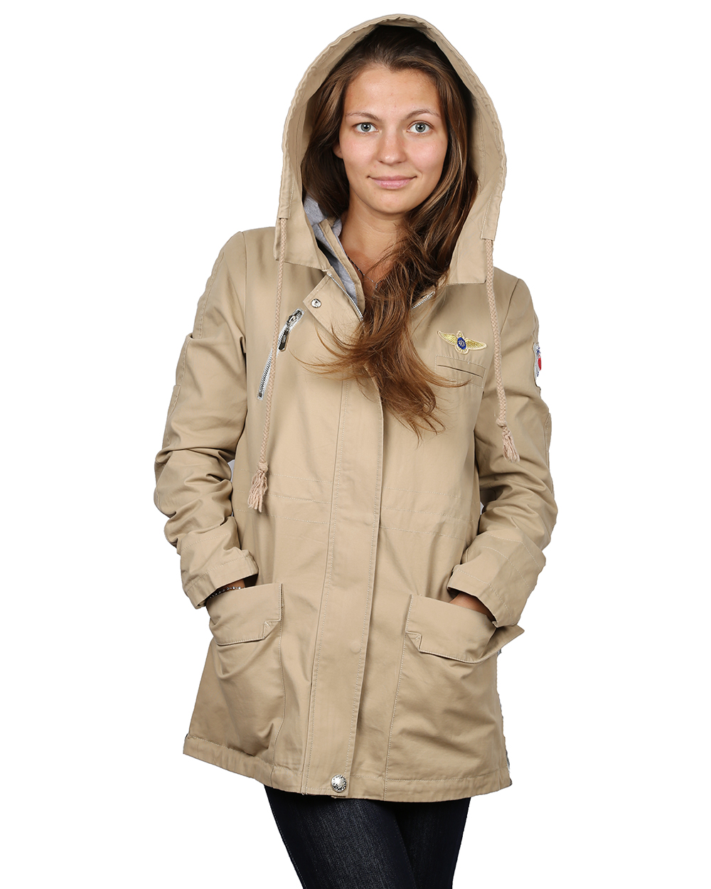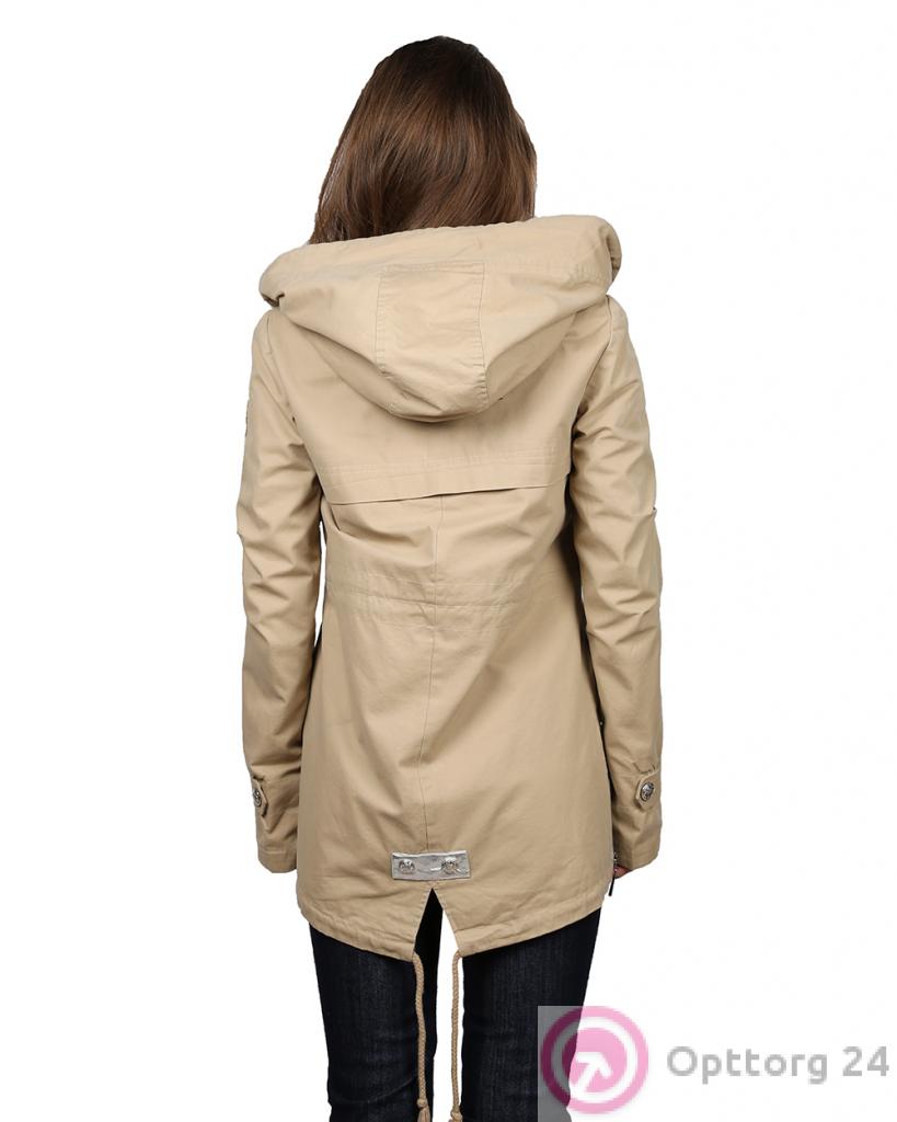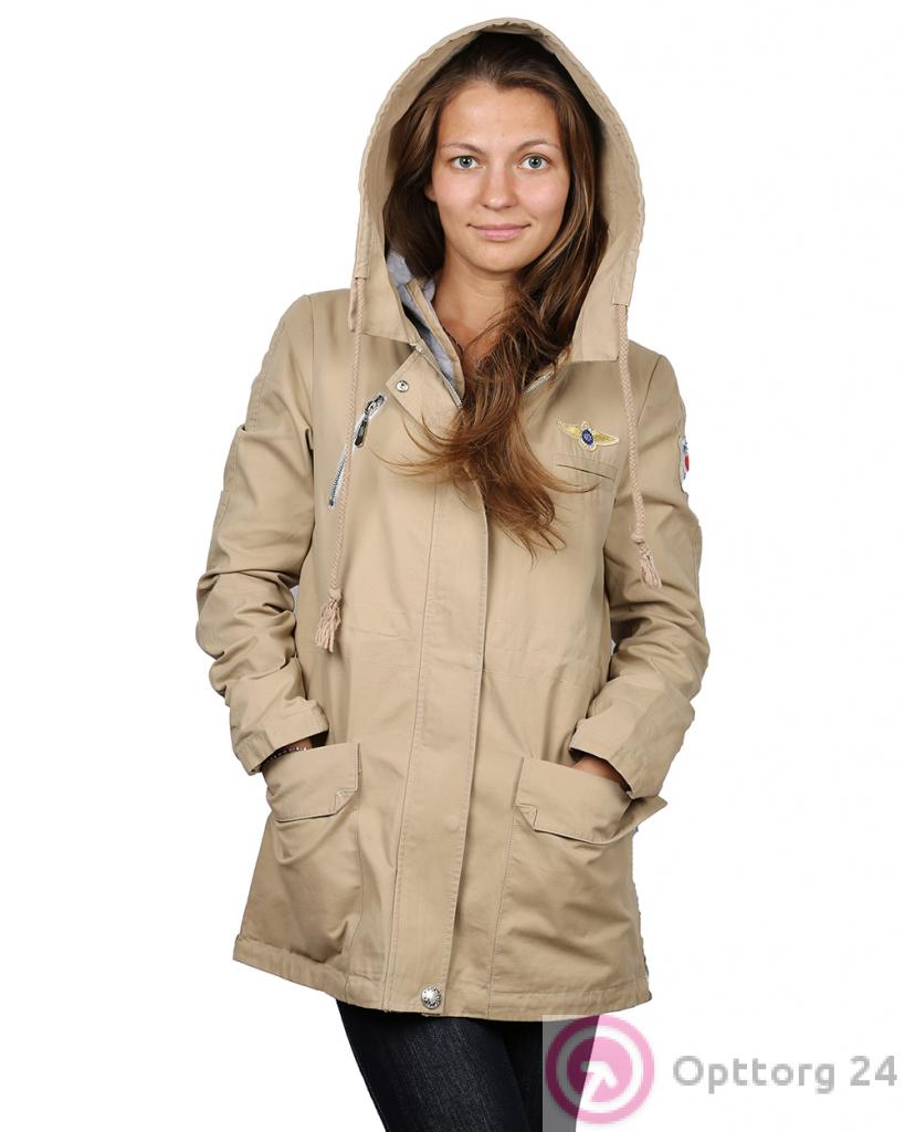 Куртка женская молодёжная бежевого цвета с эмблемами оптом