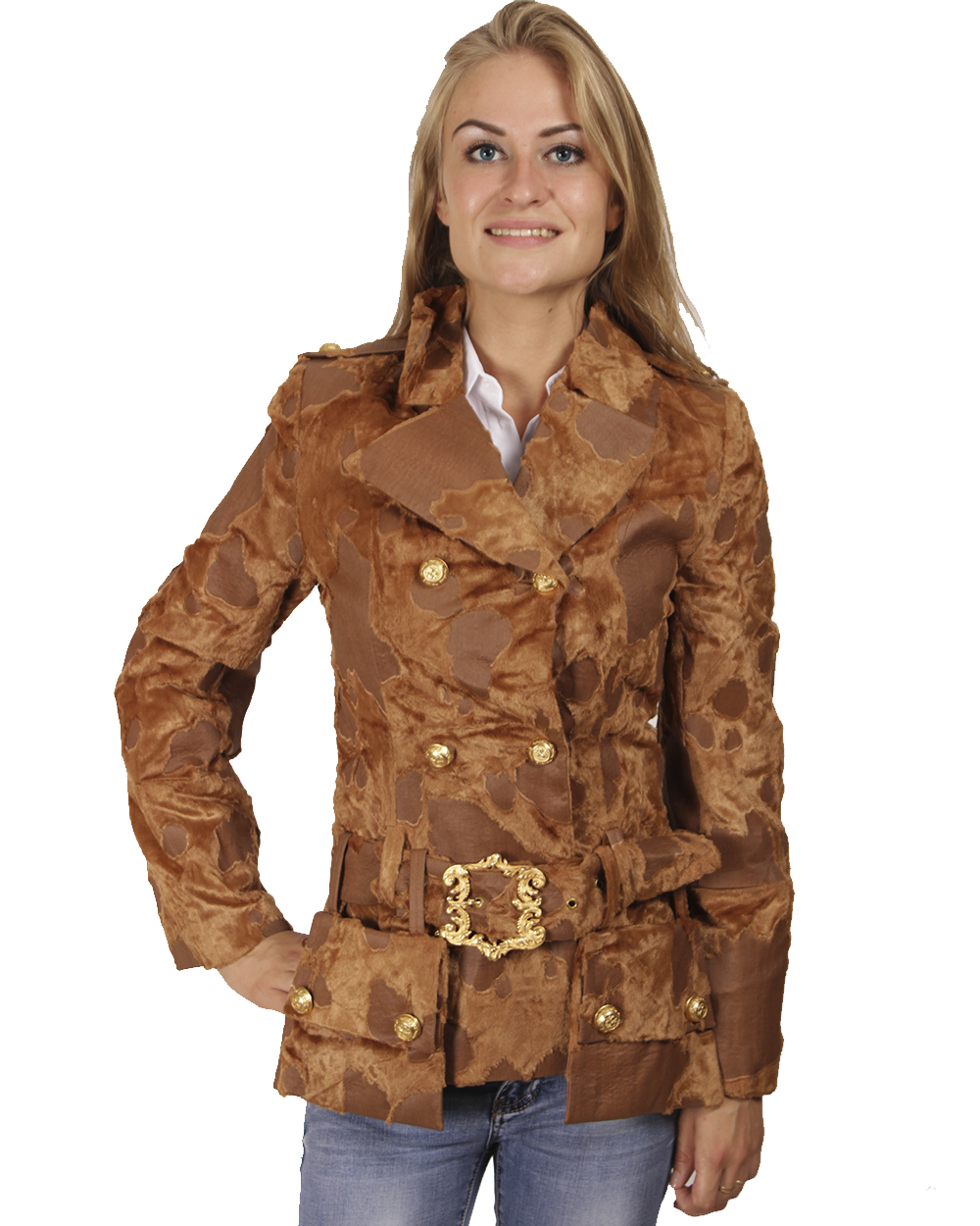 Женская куртка, укороченная. С деланна из качевственного искусственного меха, приятного и мягкого на ощуп. пояс украшен застёжкой в старом стиле, на поясе висият 2 кармана. Очень интересная, и приятная модель. Цвета в асортименте: Кофе и Коричневый.