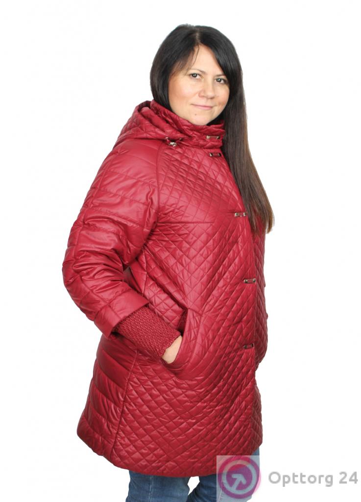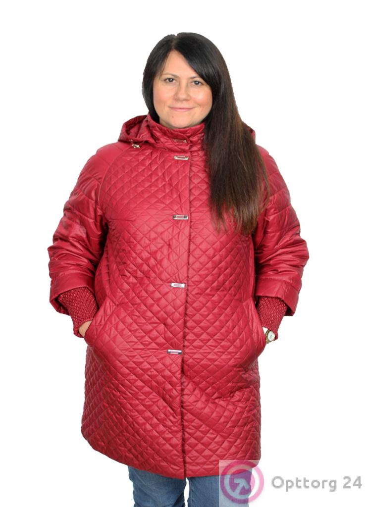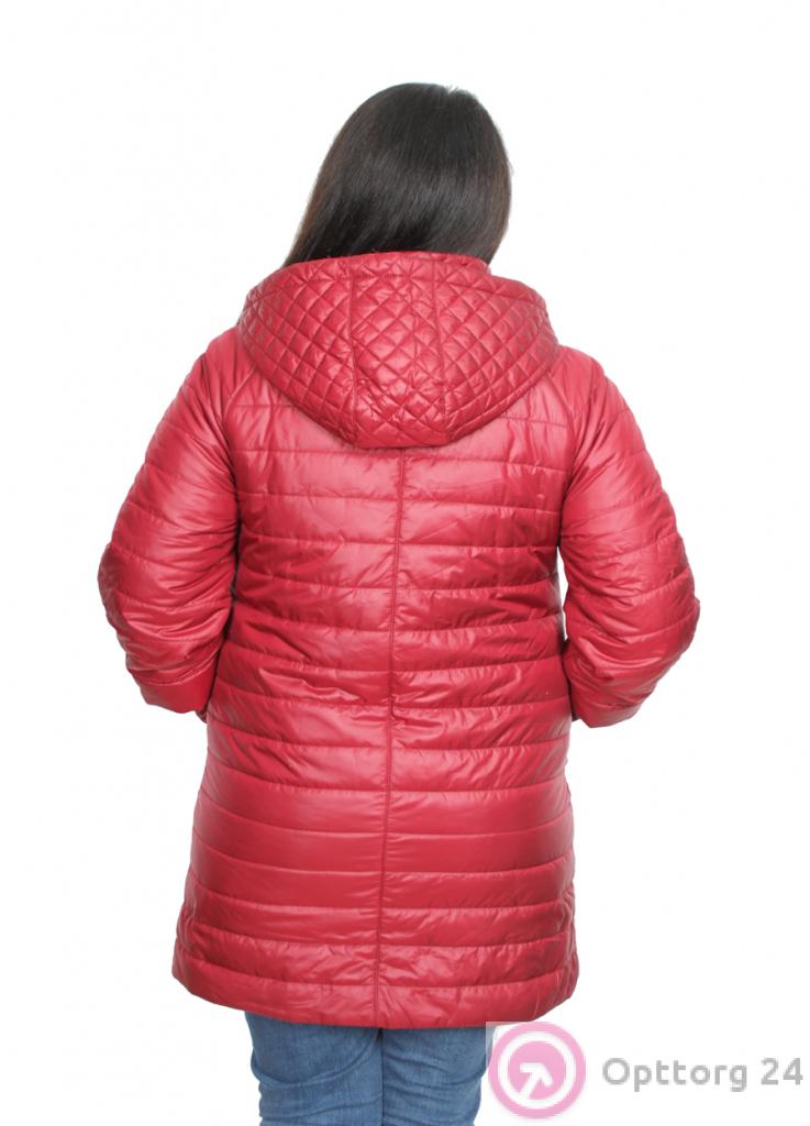 Стильное женское пальто на синтепоне красного цвета. Изделие имеет стильную вышивку ромбами, модные рукава, удобные карманы, капюшон, застежку-молнию с защитной планкой и красивые пуговицы
