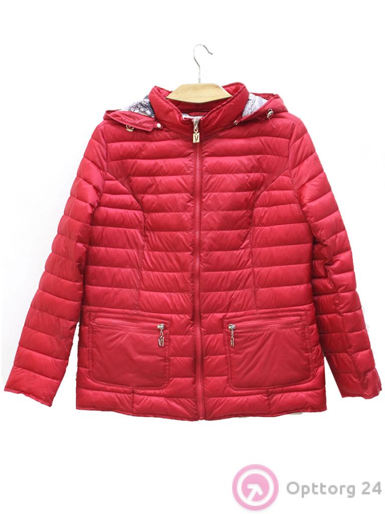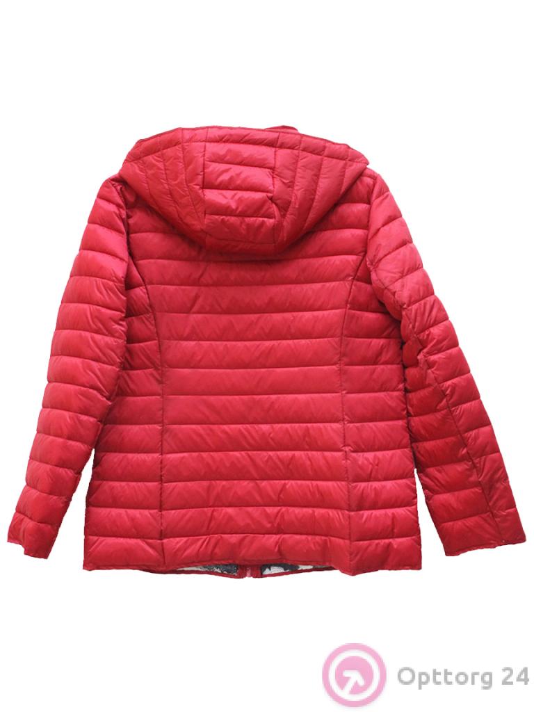 Куртка женская на синтепоне красная с капюшоном и двумя карманами оптом