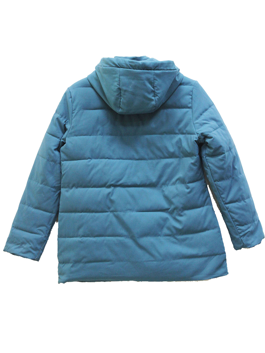 описание: куртка женская на синтепоне синяя с карманами и брелком. Есть капюшон на завязках и два кармана.