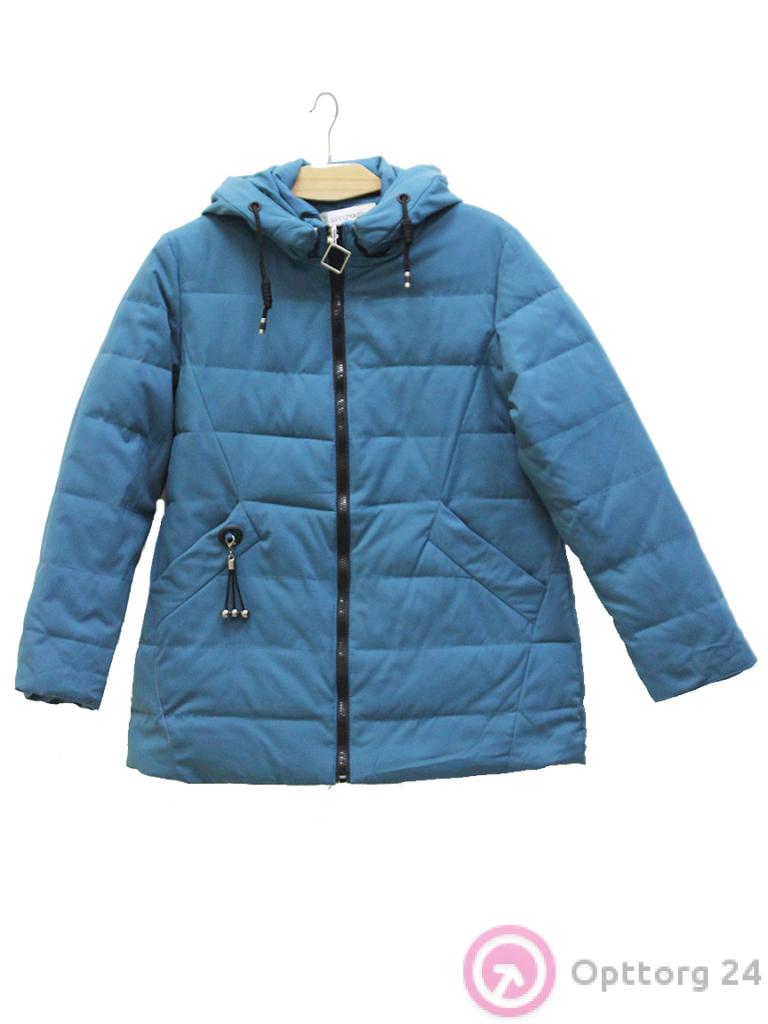 Куртка женская на синтепоне синяя с карманами и брелком оптом