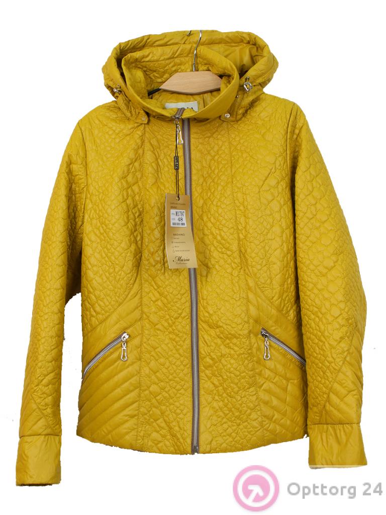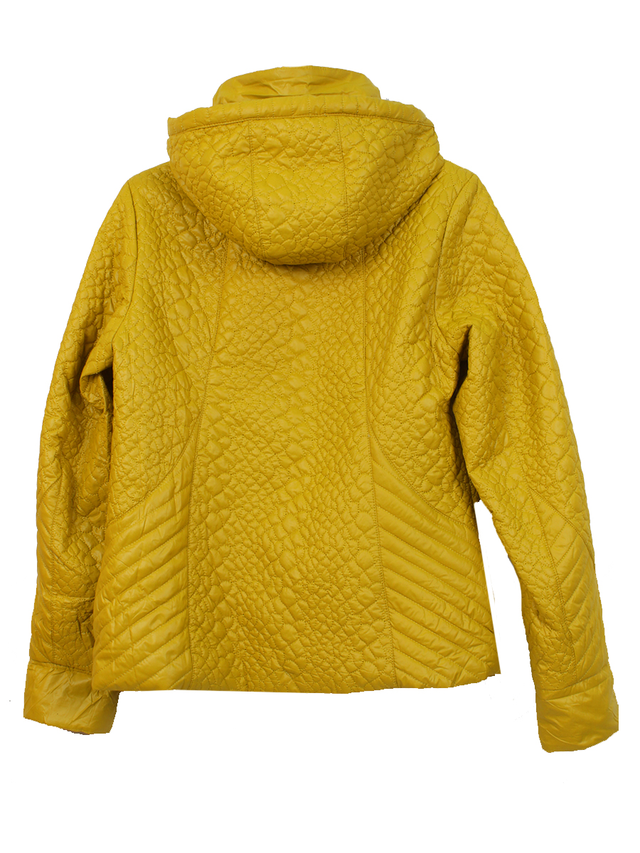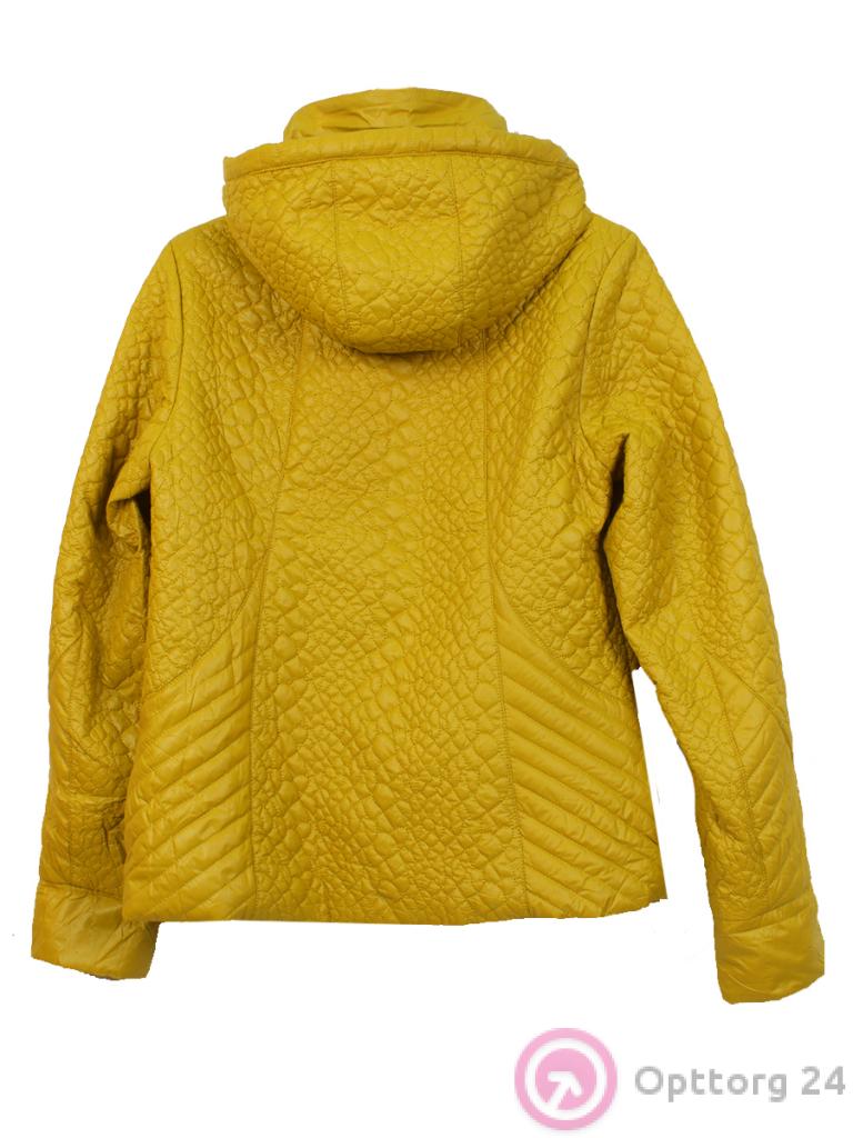 Куртка женская на синтепоне стеганая желтая с капюшоном оптом