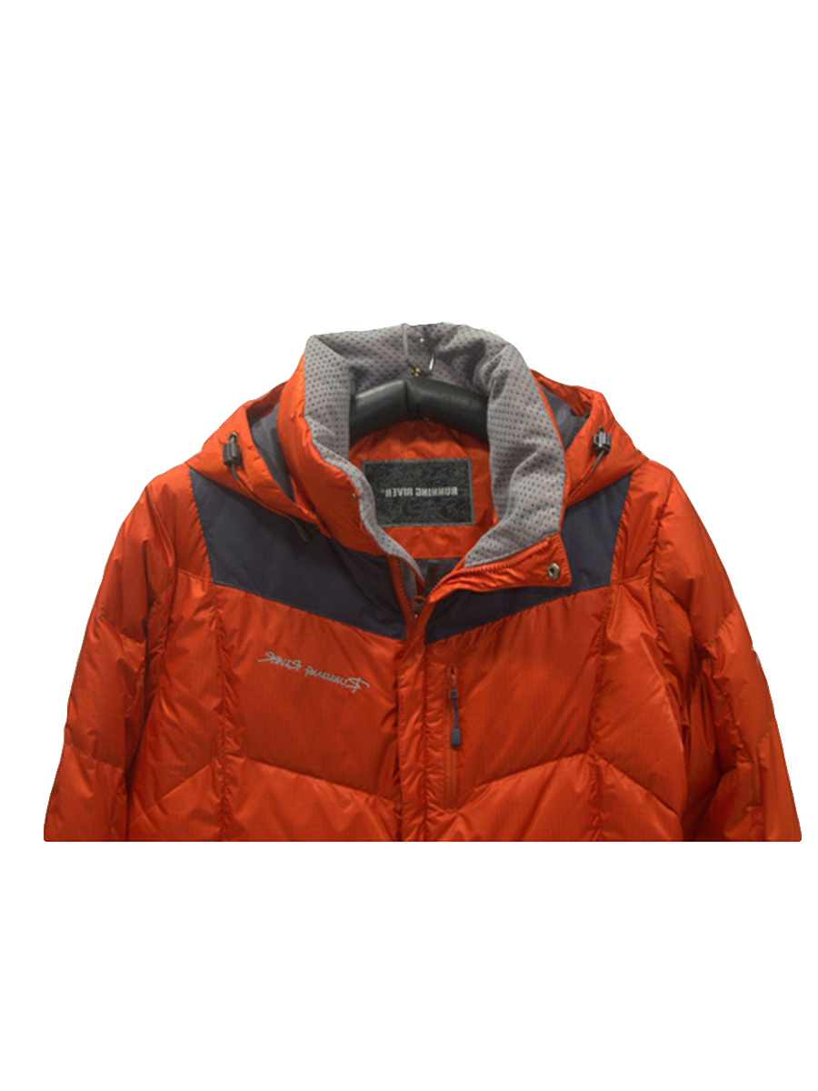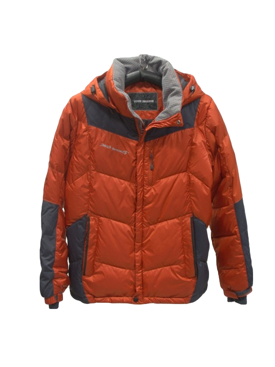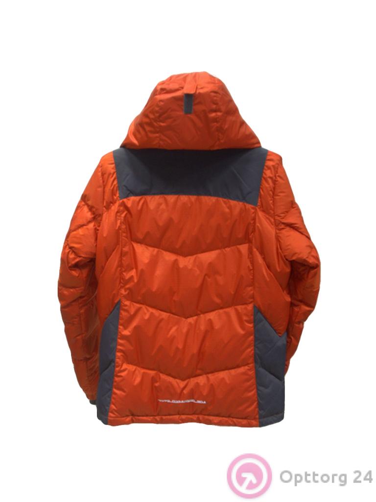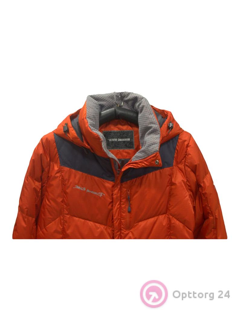Зимняя горнолыжная куртка оранжевого цвета с черными вставками. Изделие с системой вентиляции, артикулированными рукавами, снегозащитной юбкой, большими карманами и отстегивающимся капюшоном. Очень теплое и удобное.