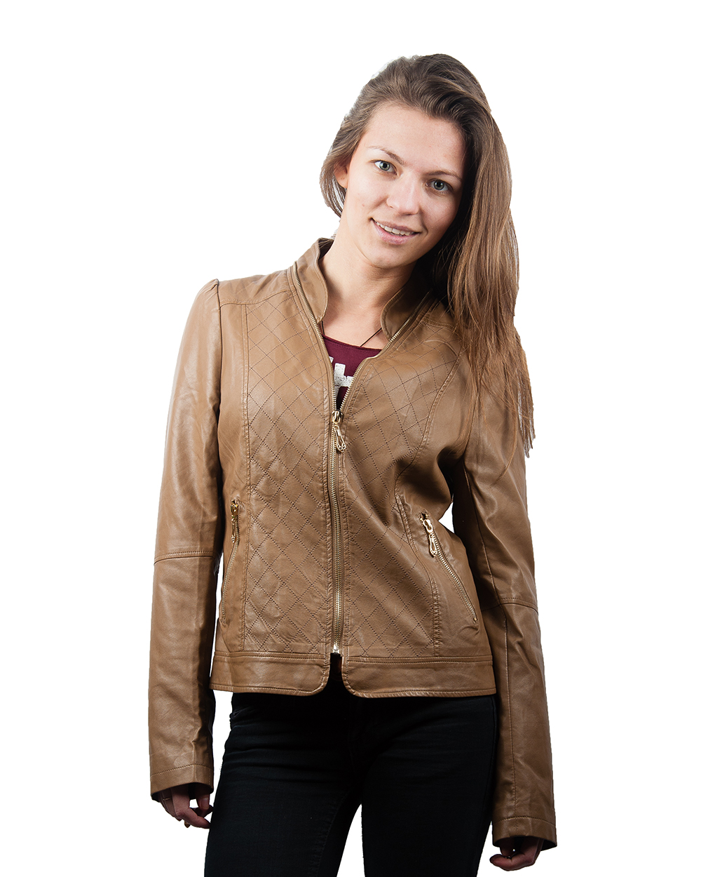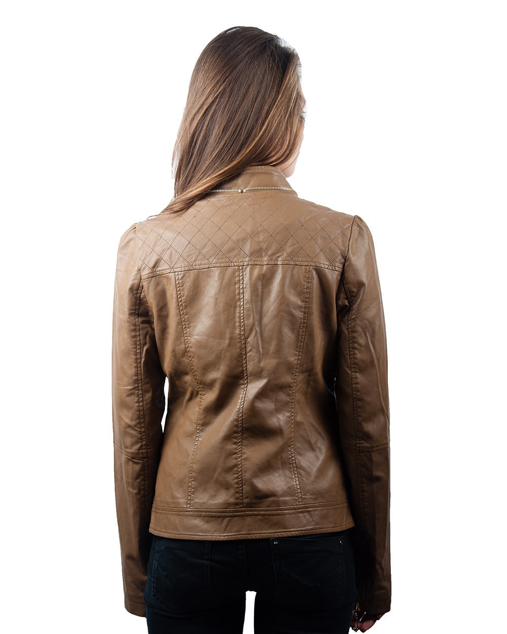 Выполненная под кожу приталенная куртка, впечатляет и бодрит своим благородным кофейным оттенком. Подобная классика будет прекрасно смотреться на любой фигуре и элегантно впишется в ваш образ.