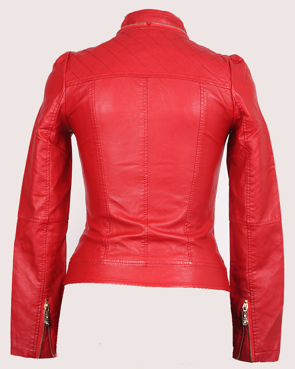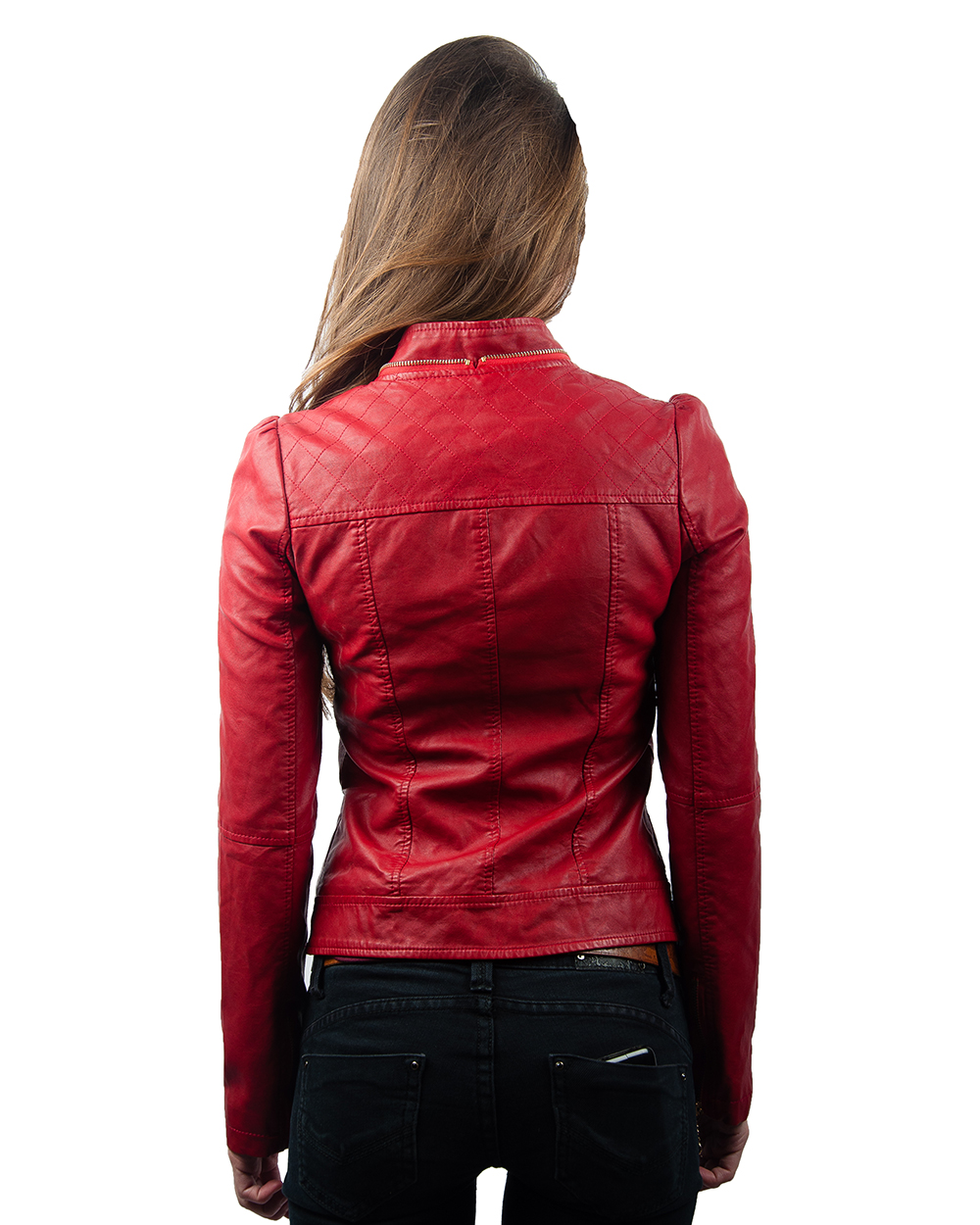 Яркая и сочная куртка, выполненная под красную кожу, прекрасно подойдет для озорных и уверенных в себе. Вы прекрасно дополните как образ выходного дня, так и игривый рабочий.