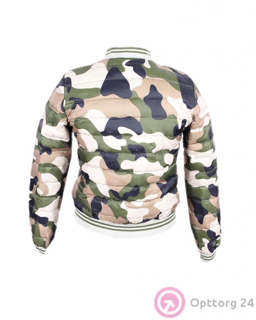 Женская куртка с V-образной горловиной. Манжеты на рукавах. Застегивается куртка на молнию.