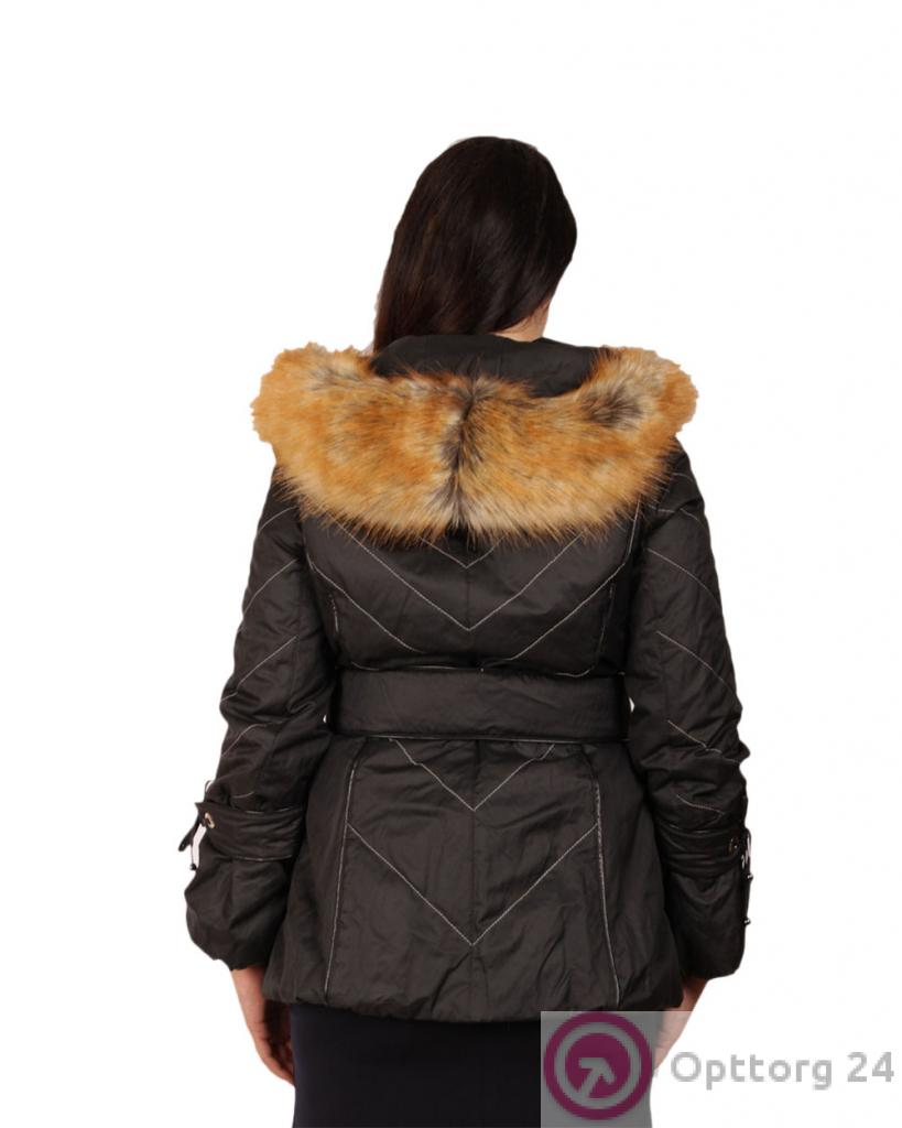 Теплая женская куртка, капюшон которой украшен мехом лисы. Изделие застегивается на пуговицы, на талии дополнено оригинальным поясом.
