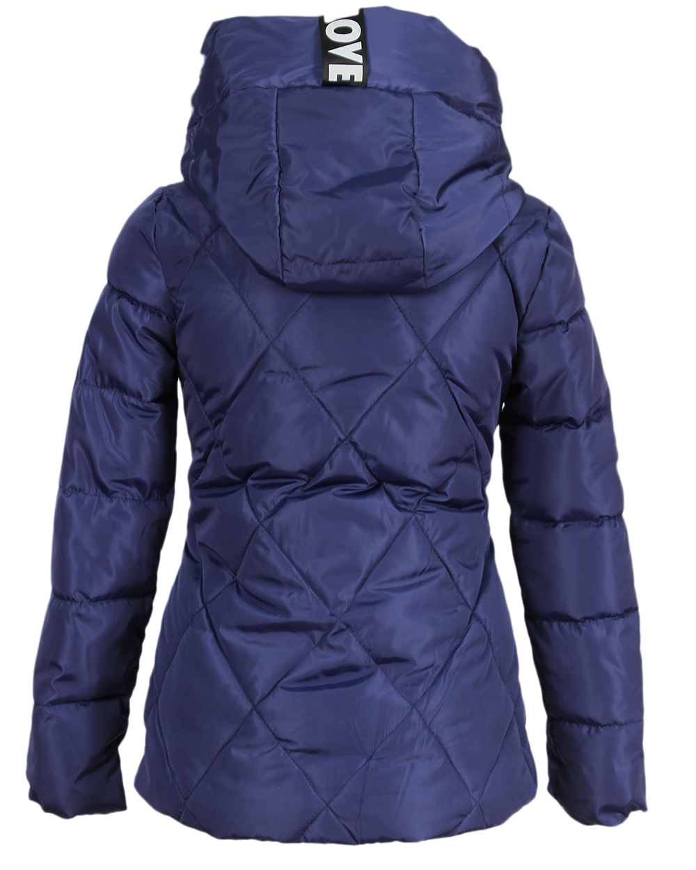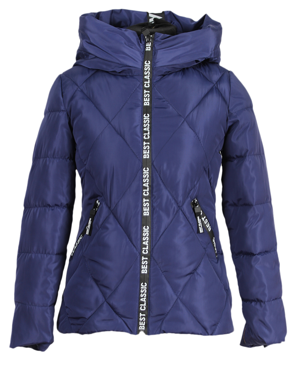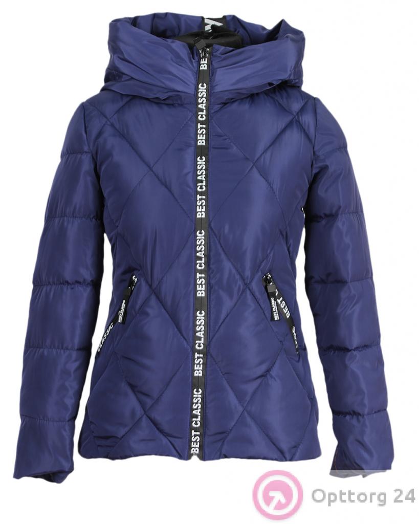 Приталенная женска куртка с контрастной черной молнией. Рукава со скрытыми манжетами, воротник-стойка.