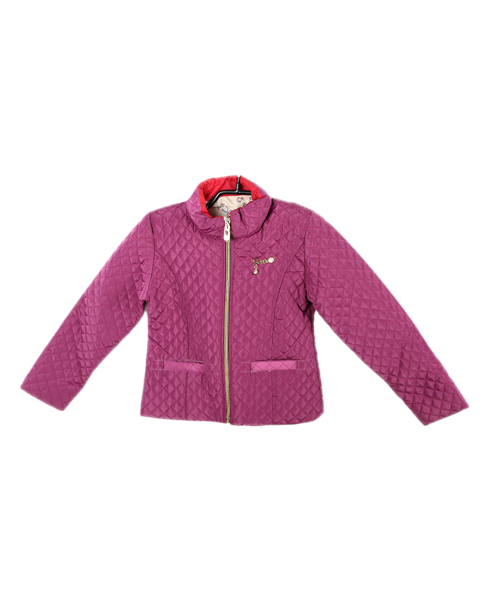 Оригинальная денская куртка прямого кроя. Модель имеет невысокий воротник-стойку.