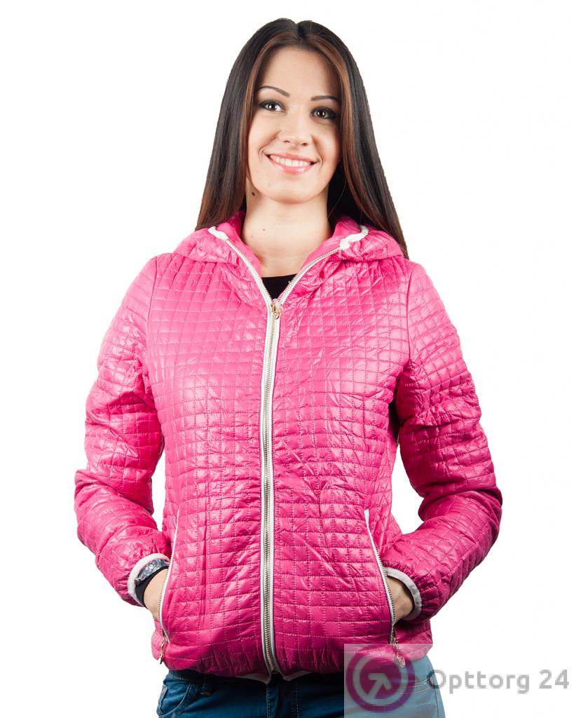 Куртка женская стеганая розовая с декоративной молнией сзади оптом