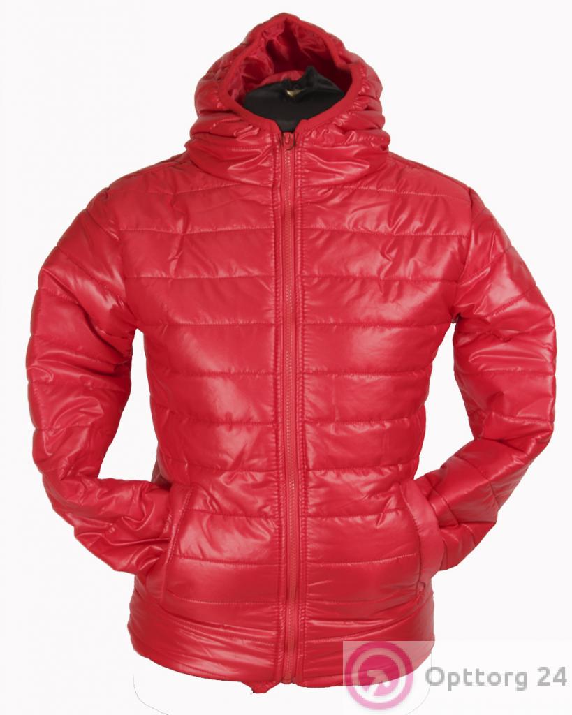 Куртка женская стёганная красного цвета с капюшоном. оптом