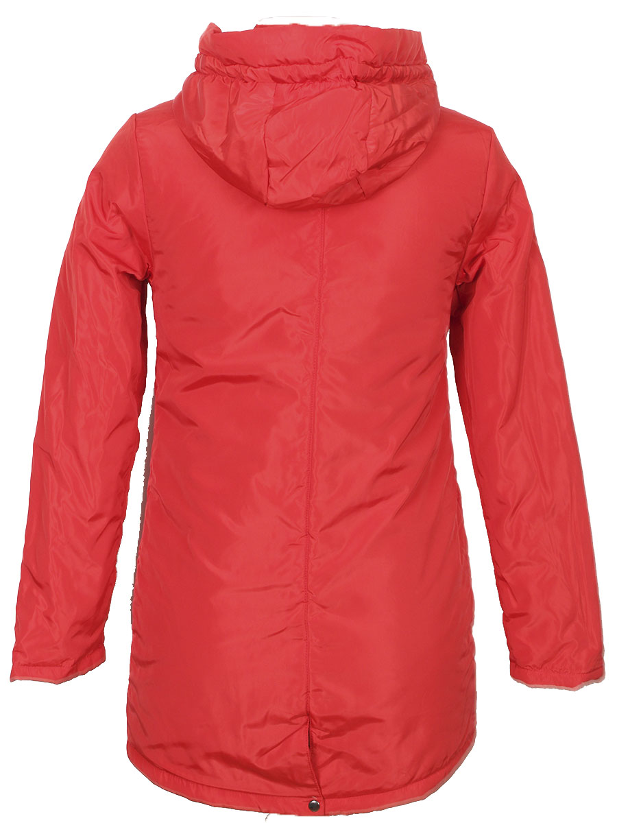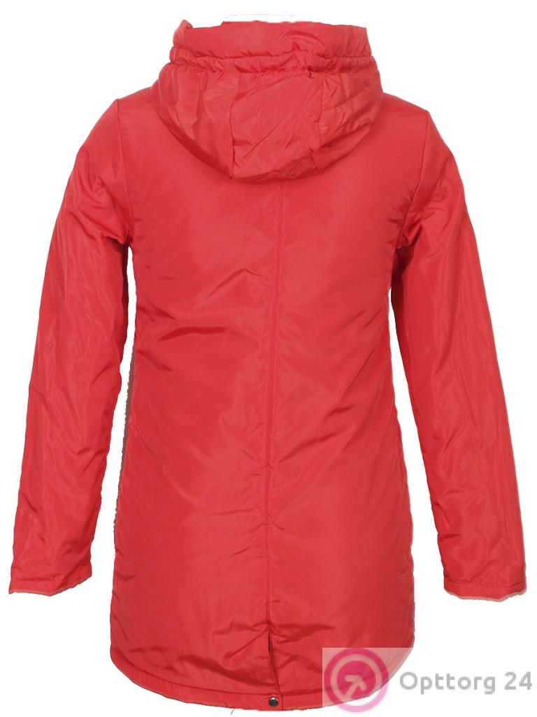 Куртка женская удлиненная красного цвета с капюшоном. оптом