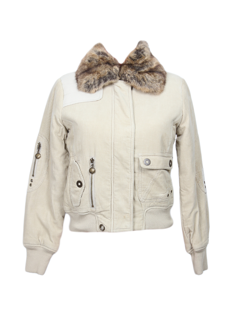 Куртка женская зимняя вельветовая с меховым воротником.