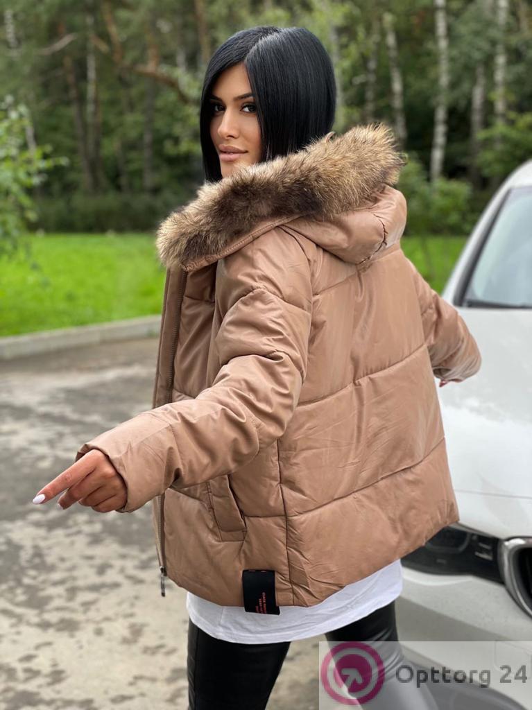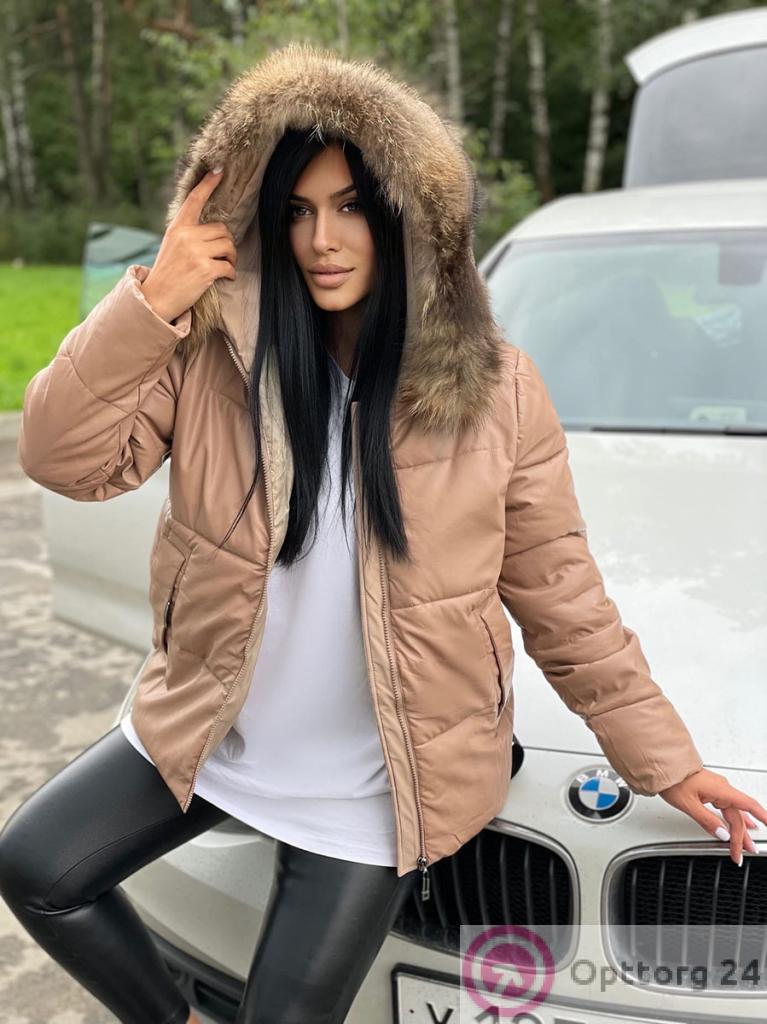 Куртка женская зимняя эко-кожа цвет песочный оптом