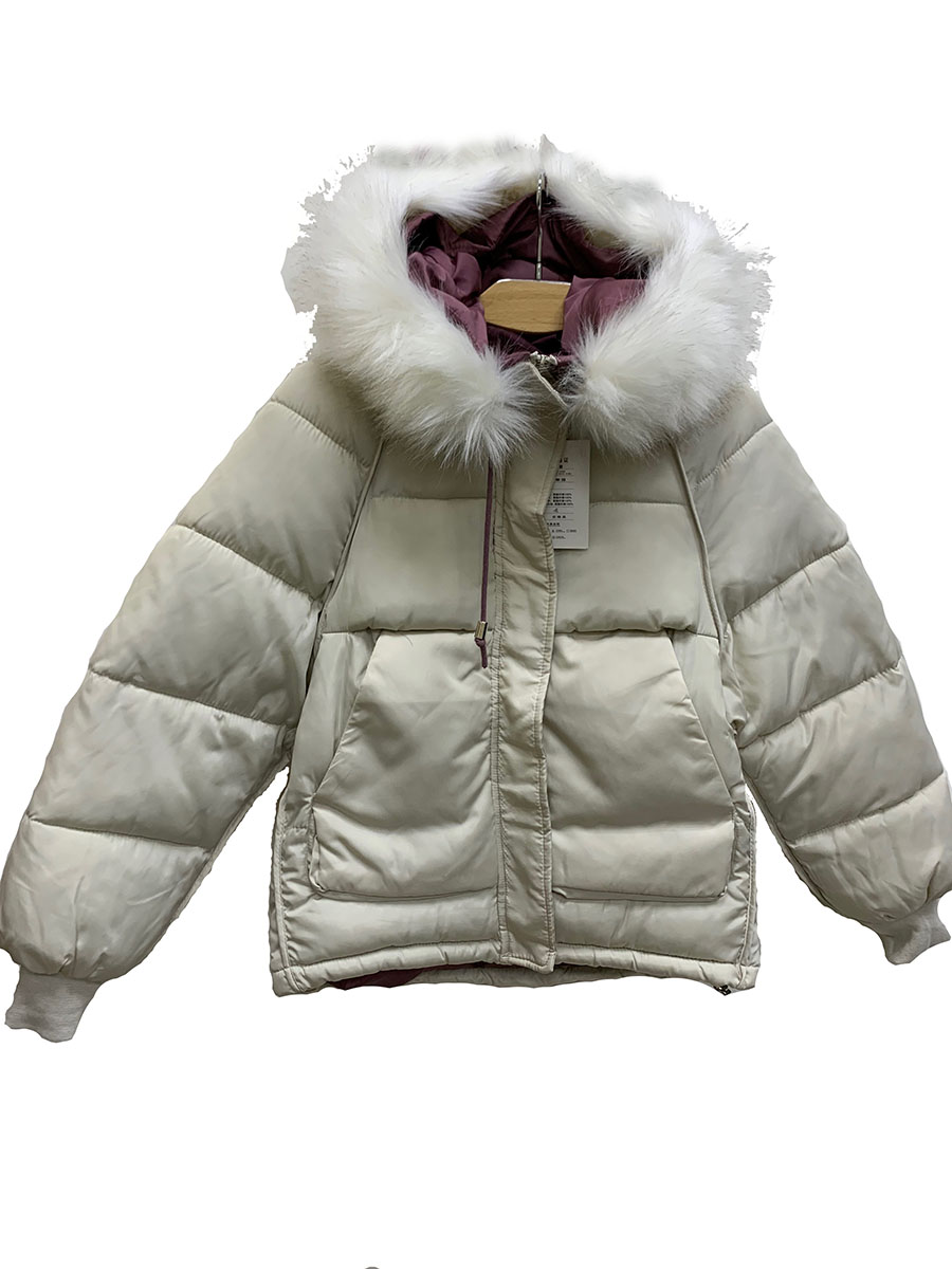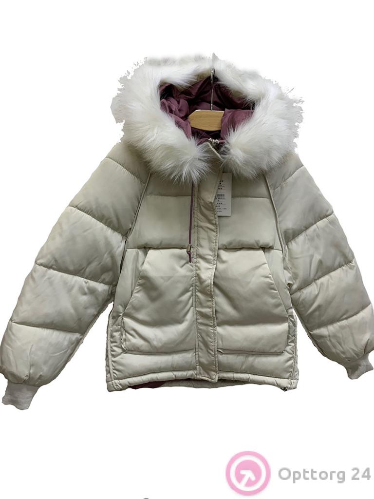 Описание: Куртка женская зимняя укороченная молодежного стиля стеганная. Белого цвета. Капюшон декорирован искусственным мехом. Есть два кармана. Застежка выполнена на молнии.