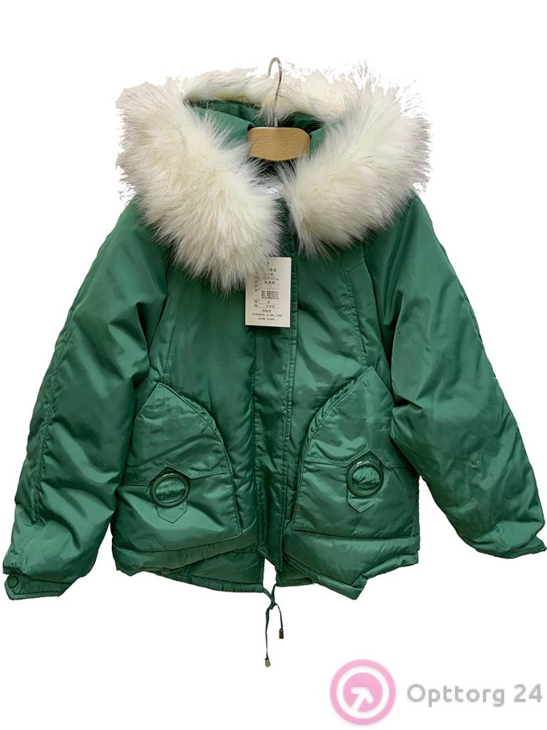 Куртка женская зимняя укороченная зеленого цвета оптом