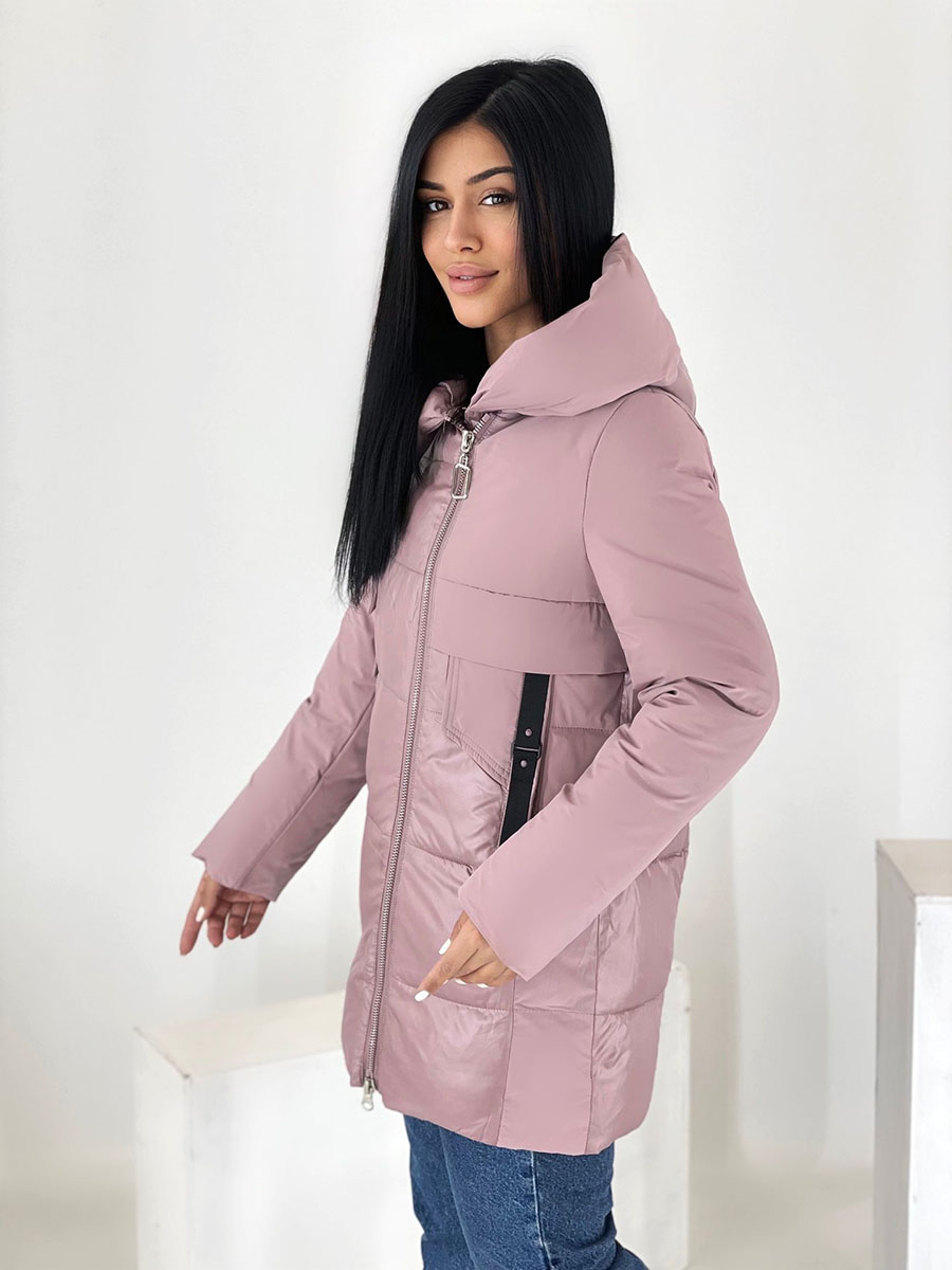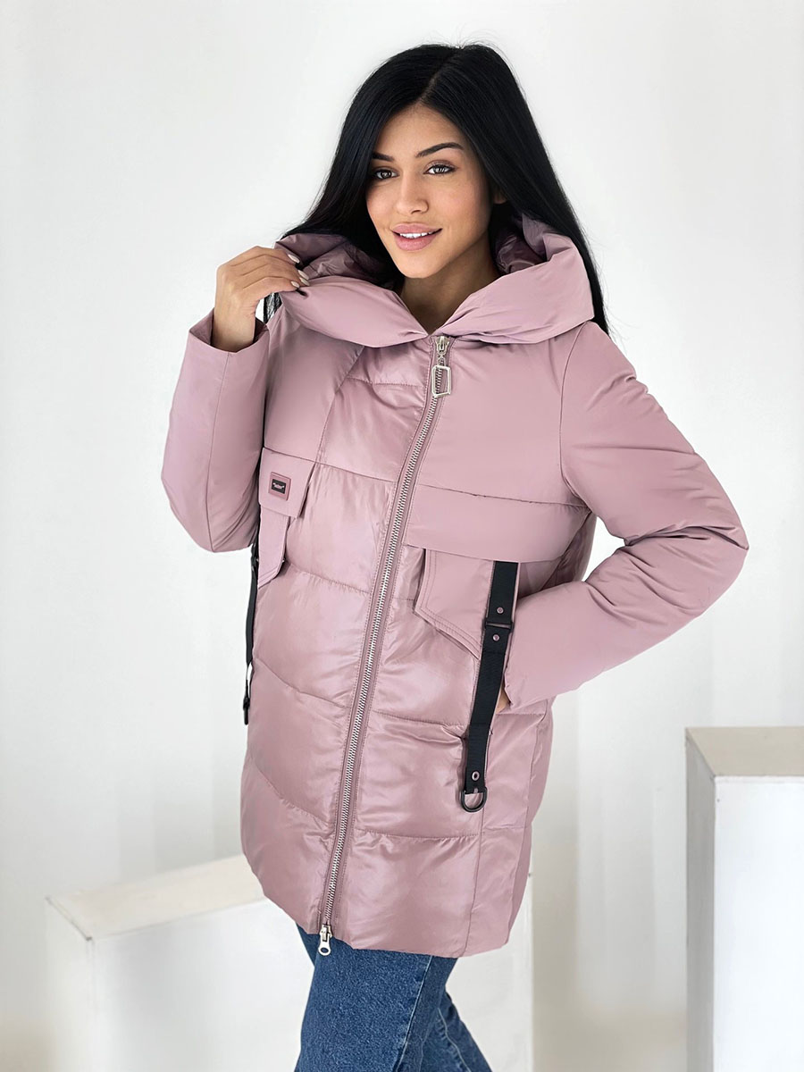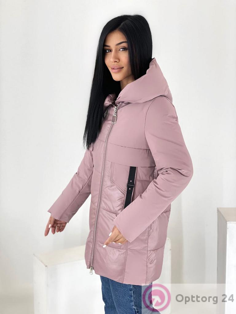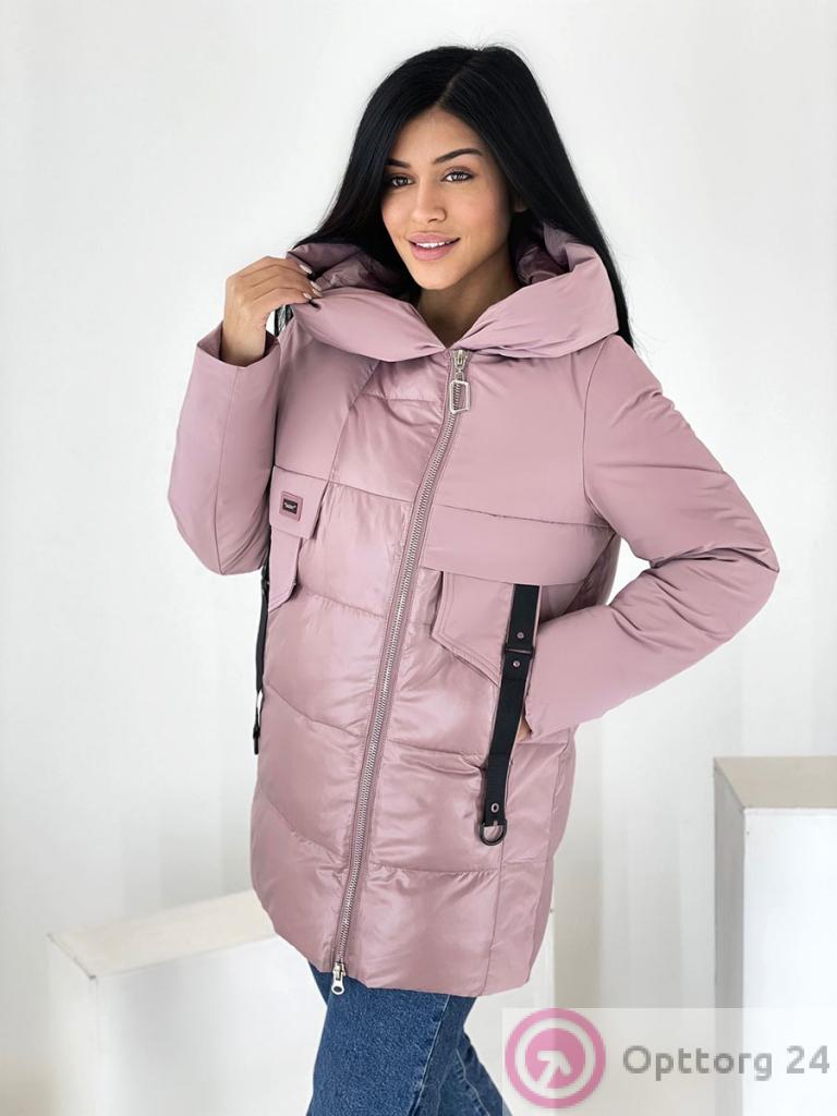 Описание: Куртка зимняя женская цвет пепельной розы, удлиненная. Высокий воротник. Есть капюшон. Застежка на двухсторонней молнии, есть карманы.