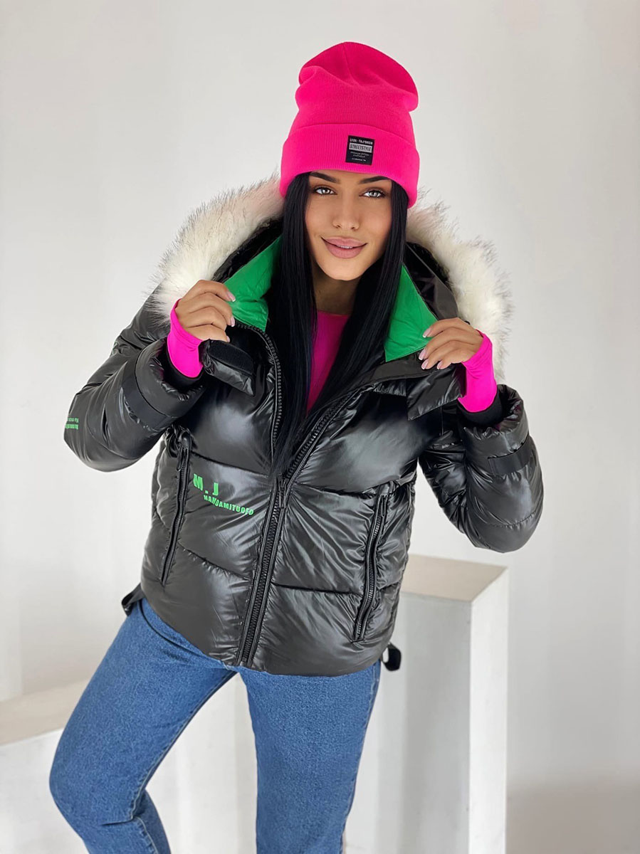 Описание: Куртка зимняя женская черного цвета. Манжеты рукавов дополнительно на трикотажной резинке и полуварежке. Высокий воротник. Есть капюшон декорирован искусственным мехом. Застежка на молнии, есть два кармана на молнии.
