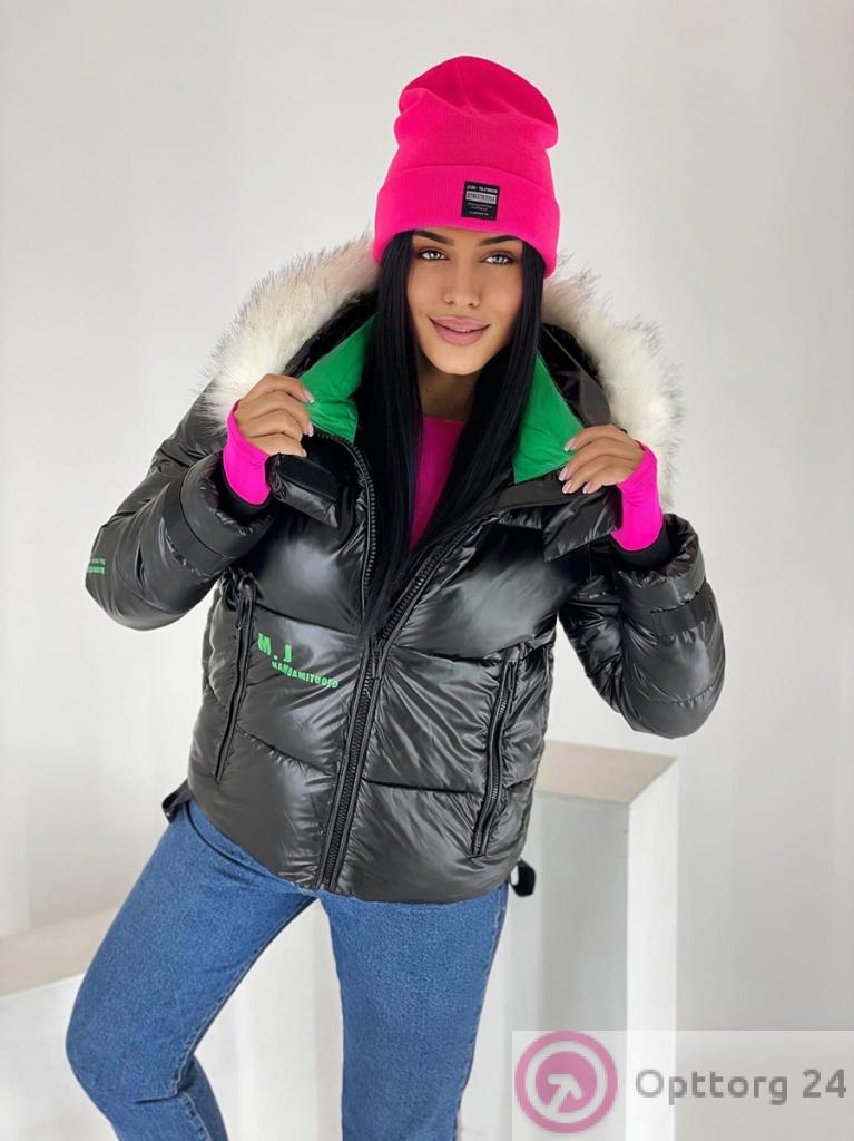 Куртка зимняя женская с искусственным мехом цвет черный оптом