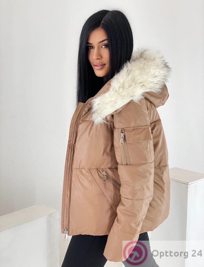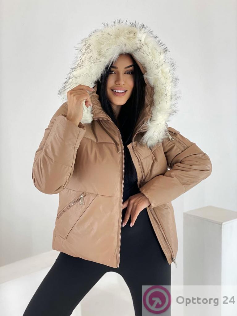Куртка зимняя женская с искусственным мехом цвет песочный оптом